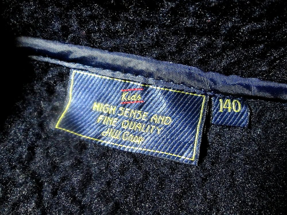 F【Kids HIGH SENSE AND FINE QUALITY Hiu Crop】ネイビー系・男女兼用・裏ボア・ジップ.スタンドカラー・フリースジャケット・140サイズ!