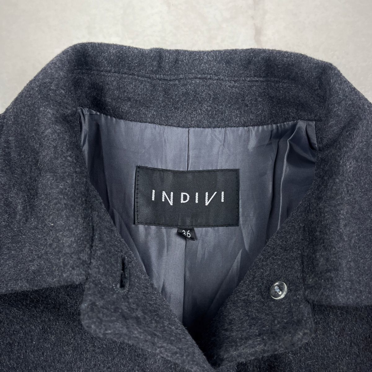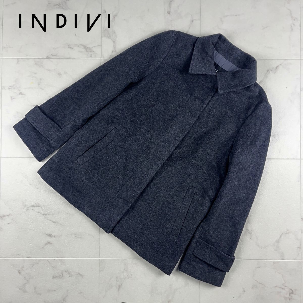 美品 INDIVI インディヴィ メルトンウール ステンカラーショートコート レディース 冬物アウター グレー サイズ36*KC215