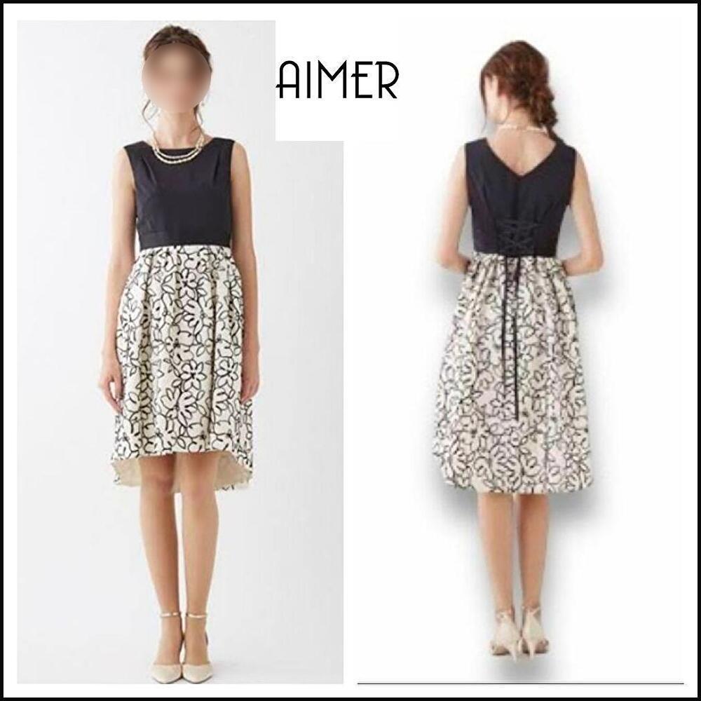 【AIMER/エメ】テープフラワー刺繍ワンピース 結婚式 パーティー モノトーン 披露宴 9号 ドレス オケージョンワンピース 送料無料