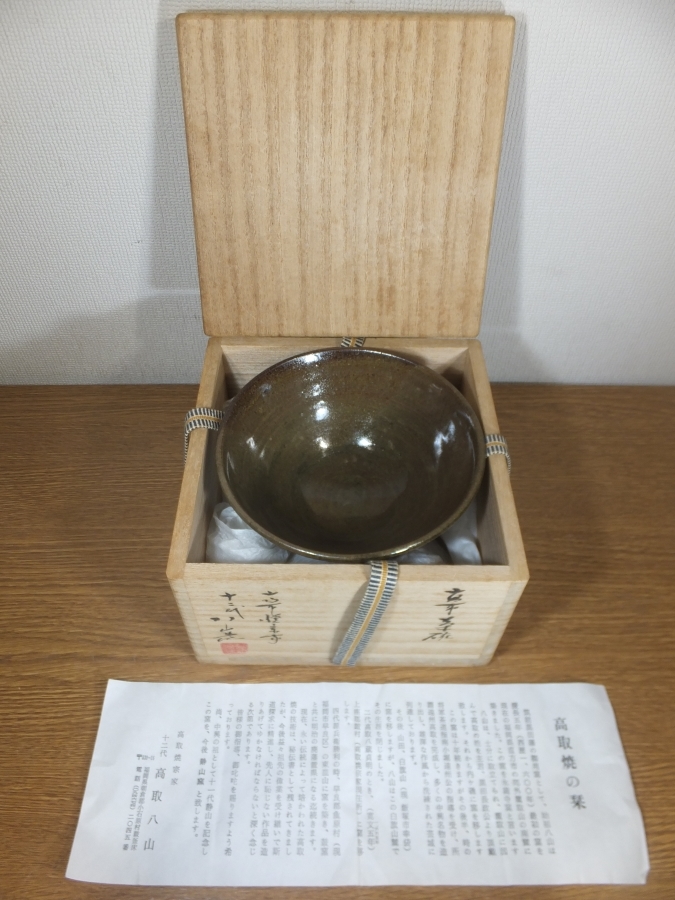 | 説明 | 福岡県出身 陶芸家で高取焼宗家 12代 高取八山(道雄)の『高取茶碗』無傷 共箱 シオリ付です。 状態は良好です、このままで使用して楽しめます。 高台脇に「高取 八山」の彫銘があります。 高台にまで掛けられた高取特有の釉薬の濃淡が景色と為り、大変上品な作品に仕上っています。 手取りも良く、使い勝手の良い作品です。 季節を問わず茶席で使用して楽しめます、画像で御確認下さい。 コレクターの放出品です。 ★九州地方の買出し品です。 買出したままでの出品です、御入札宜しくお願い致します。 入札は早めにお願い致します。 一人でも入札があれば梱包作業に入りますので、素早い発送が可能です。 早期終了あり。 12代 高取八山(道雄)は、(1929-) 福岡県出身。 師は高取静山。 高取焼宗家12代 高取焼中興の祖として名高い、 11代高取静山の長男として生まれる。 母(静山)に師事して、 日本伝統工芸展、西日本陶芸展、西部工芸展などにて入選。 そのほか個展では日本橋三越、 大阪高島屋他各地の百貨店にて度々開催。 伝統的な高取の技法を尊重し、 古高取の再現に追及、主に茶陶を展開。 |