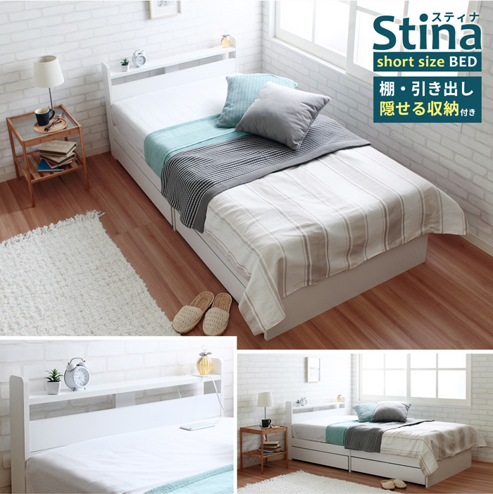 隠せる収納付きヘッドボード仕様ショートベッド