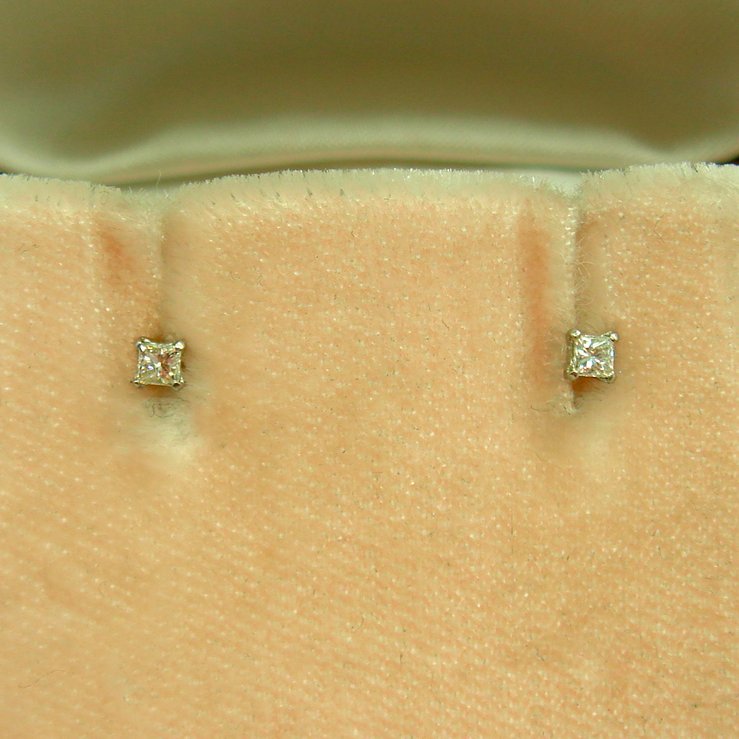 小粒ですが、傷気のほとんど無い非常に美しいプリンセスカットダイヤのピアスです。
