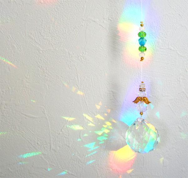 |  Angel Sun Catcher 天使のサンキャッチャー サンキャッチャーとは? クリスタルガラスが太陽の光を受け、お部屋の中にたくさんの虹を運んでくれる、光のインテリアです。 太陽の光をプリズムのように反射し、小さい虹色の光をいくつも作ります。 そのため、レインボーメーカー(Rainbow maker)とも呼ばれ、欧米諸国では『光のインテリア』として大人気となっています。 また、太陽の光りを集めるサンキャッチャーは、邪気を払うものとして風水 でも用いられているため、トイレなどの邪気が溜まるとされている場所に吊るして使用する事もあります。 ※同じ商品でも天然石の場合、色合い・模様・形などが異なることがあります。サイズに多少の違いが出る場合がございます、 ※照明の具合で実際とは色合いが異なる場合があります。 ※ 内部に不純物等がある場合がございます。 ※細かいキズや欠け、へこみやひび割れなどが見られる場合があります。 予めご了承下さい。  |  |