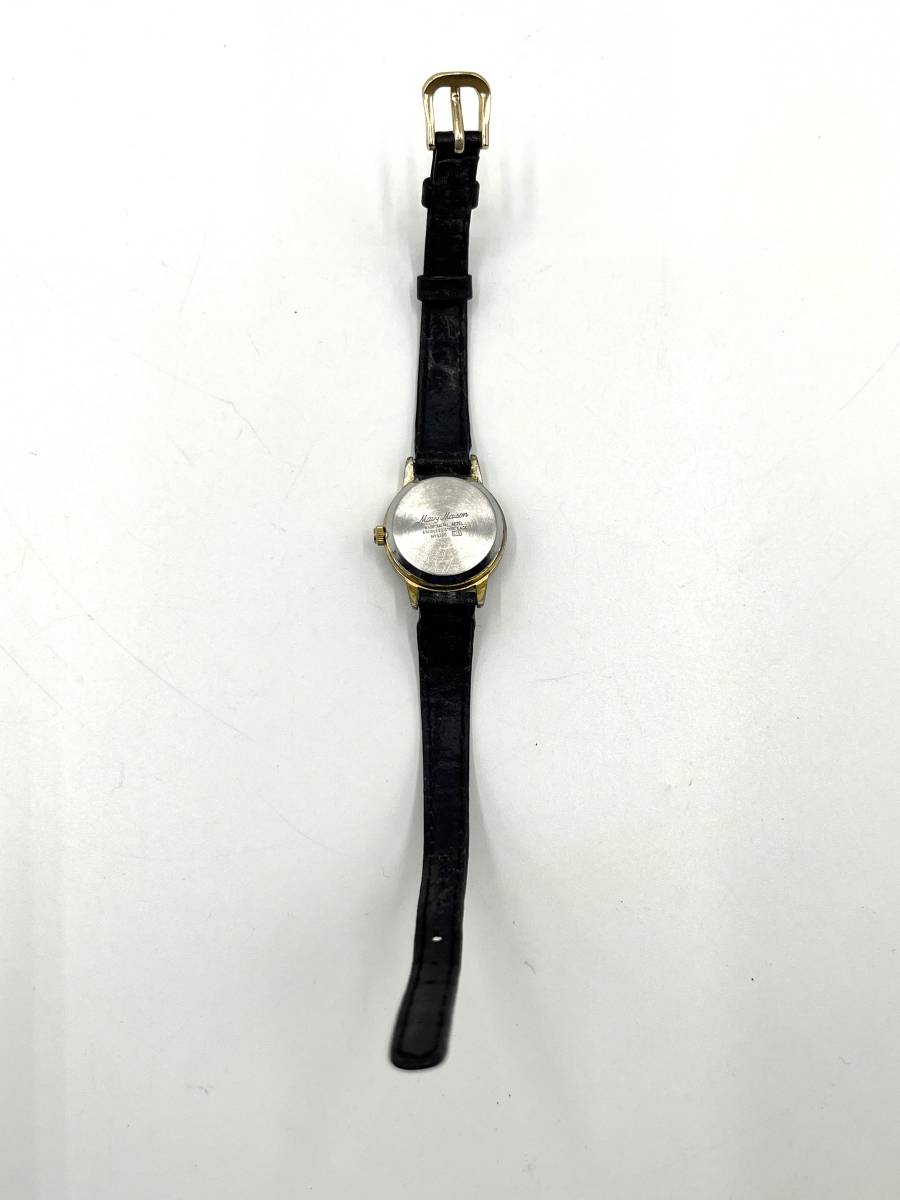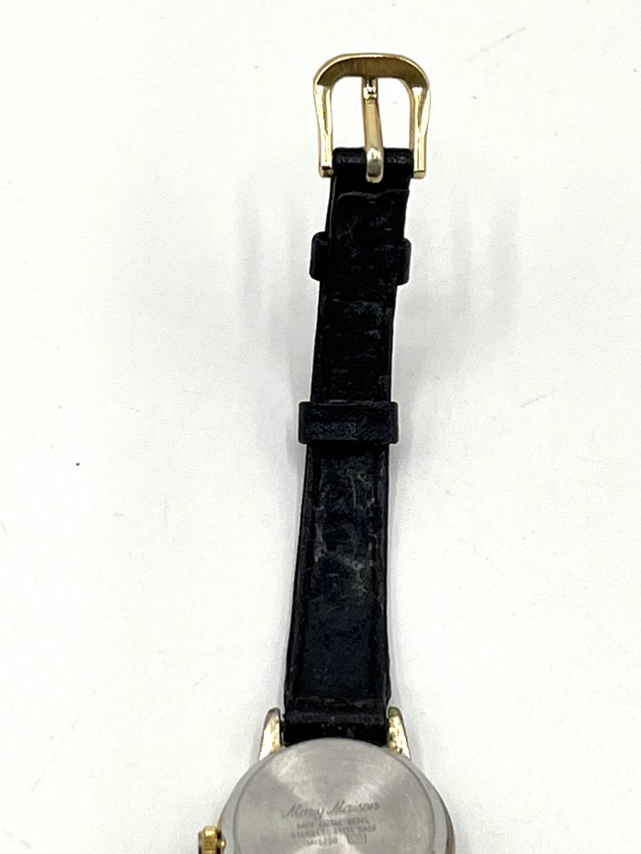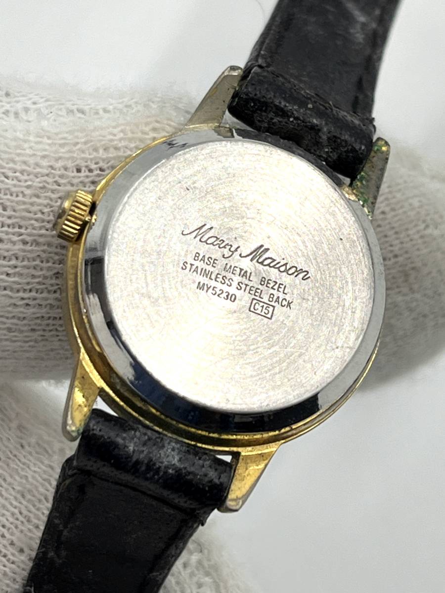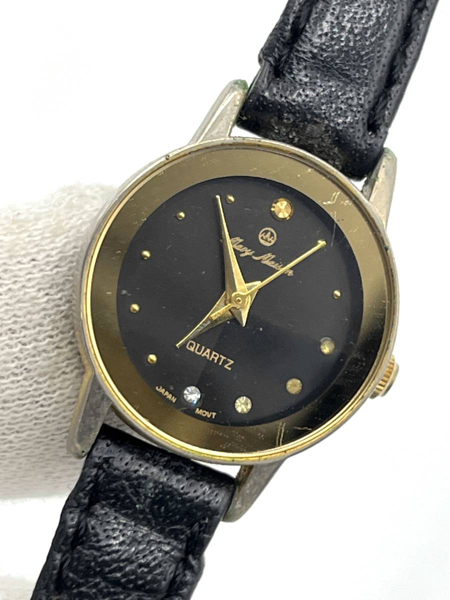 【電池切れ】mavy maison マビーメイゾン クォーツ 腕時計 黒文字盤 ラウンド ラインストーン レザーベルト レディース MY5230