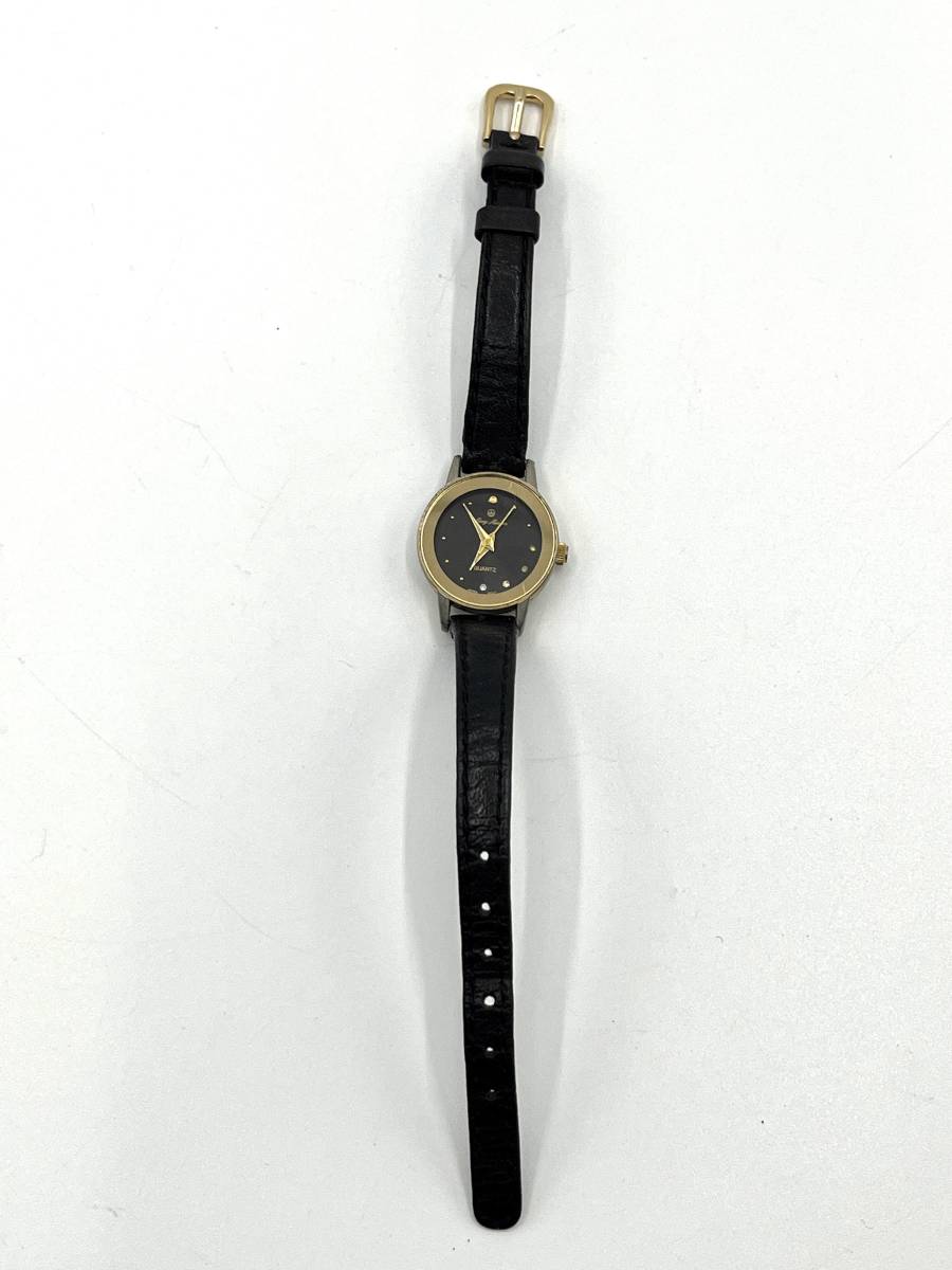クォーツ 腕時計 黒文字盤 ラウンド ラインストーン レザーベルト レディース