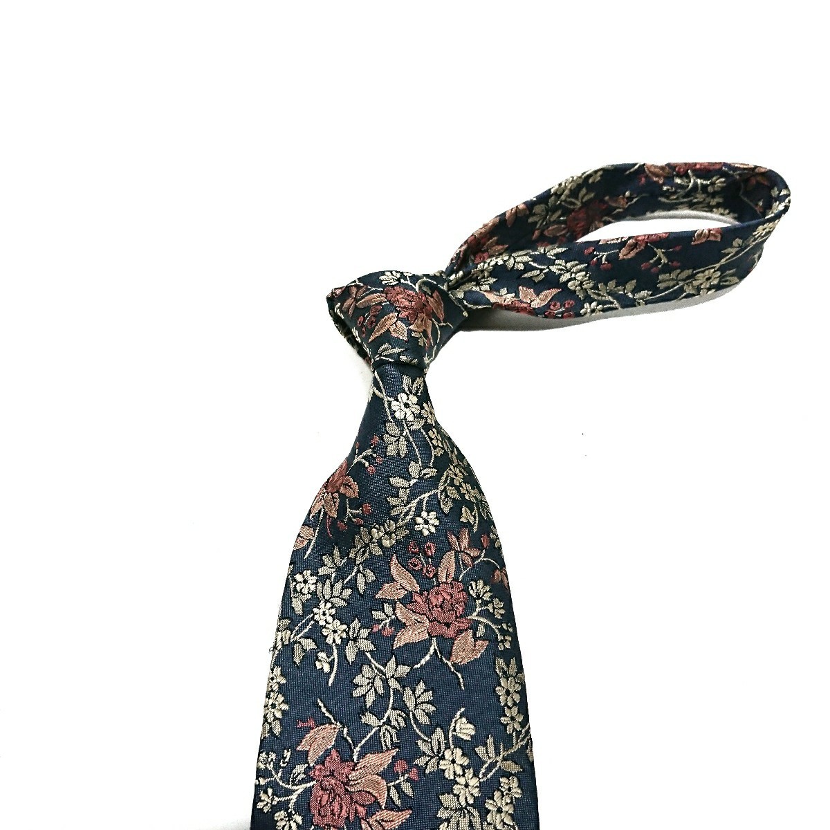 ▼模様はレジメンタル、ペイズリー、フラワー、四角いデザインの織りです