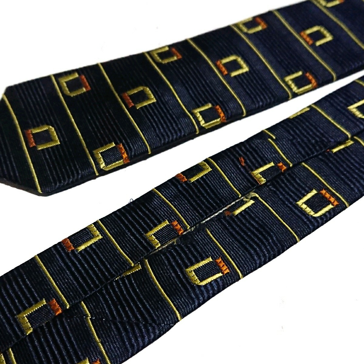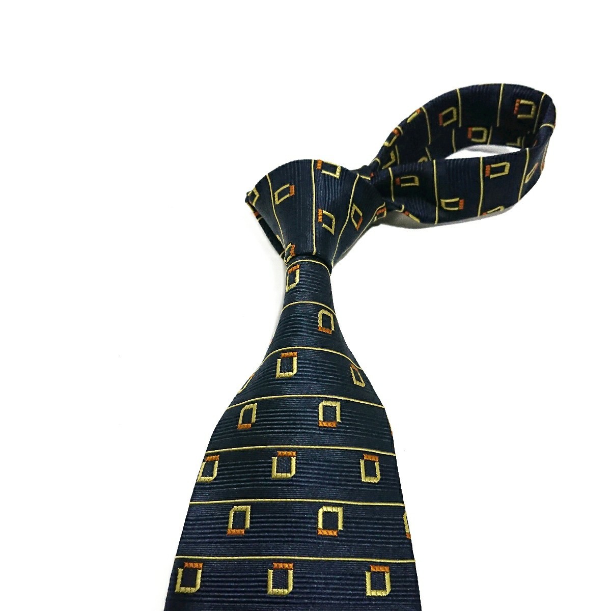 ▼状態は1-2品に剣先弱擦れ、引っ掛け、紺の四角い模様の裏側留め糸一部に解れがある(最終画像10参考)中古品です