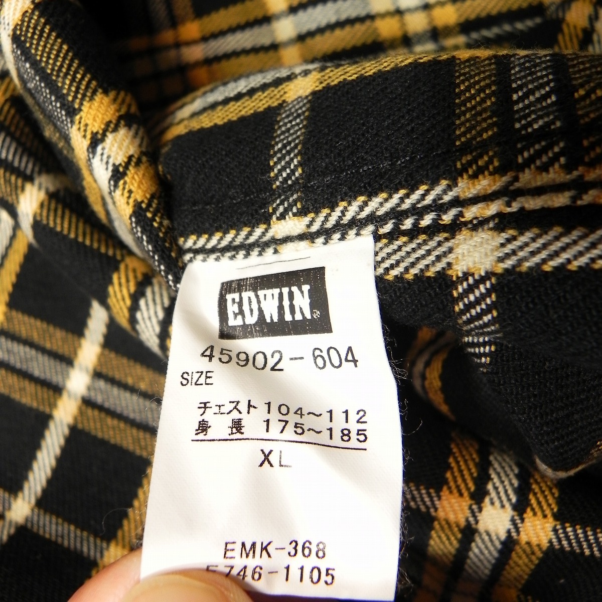 美品 ★ EDWIN エドウィン 45902-604 チェック柄 ネルシャツ XL 黒 ブラック 長袖シャツ 即決 ★c
