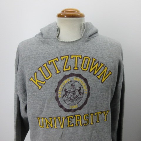 80s USA製 パーカー M グレー KUTZTOWN カレッジ レーヨン オールド ヴィンテージ アメカジ古着 sy3789
