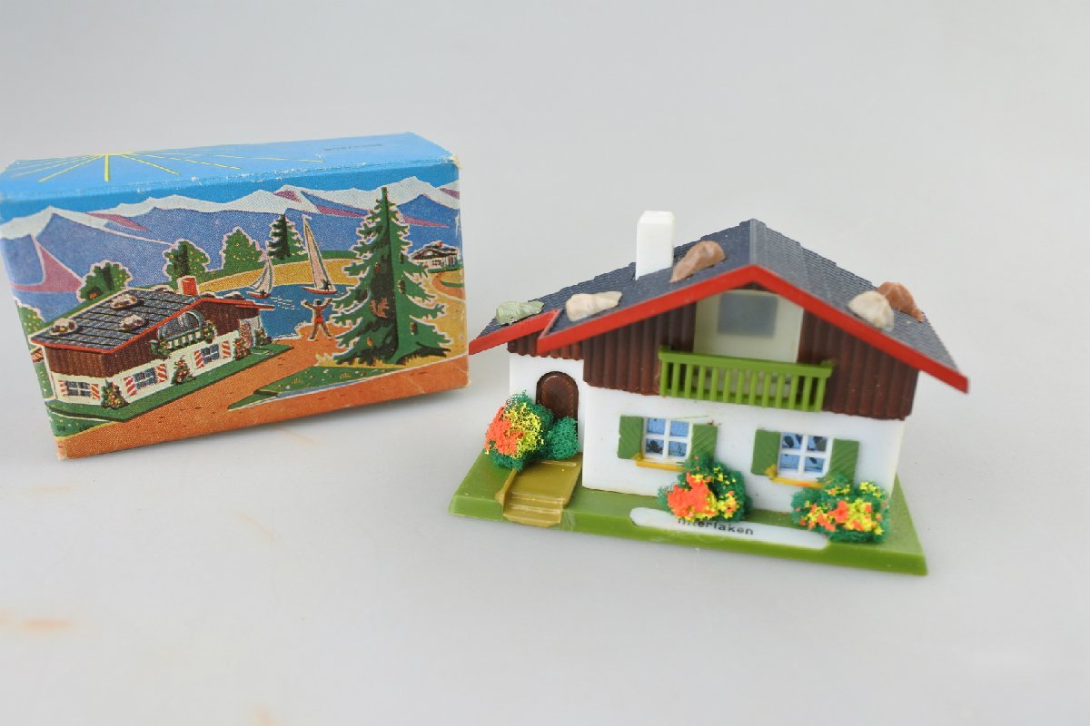 煙突部分を下に押しながら裏側のレンズをのぞき込むと、スイスのインターラーケン(Interlaken)の観光地が8枚、スライドで入れ替わります。