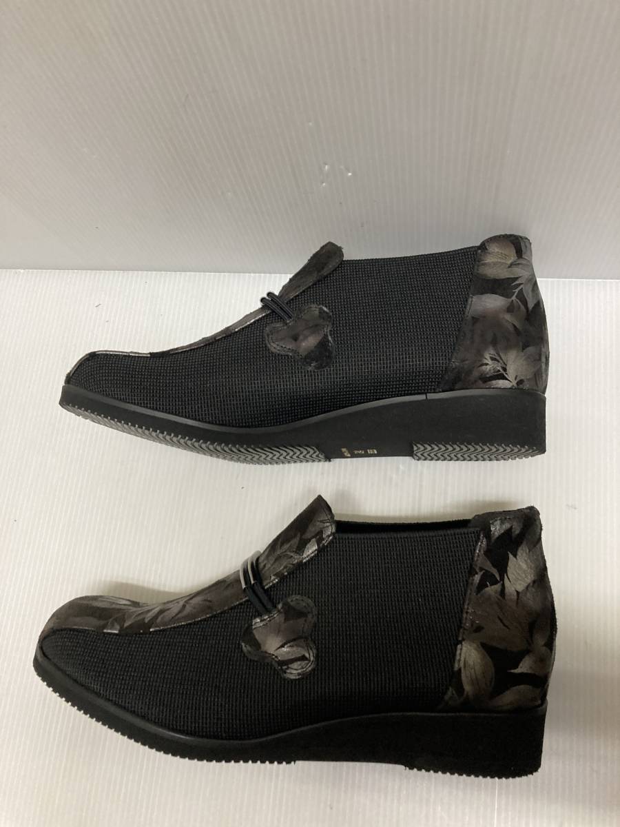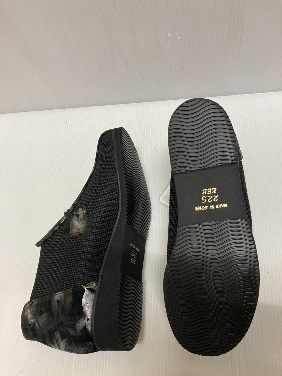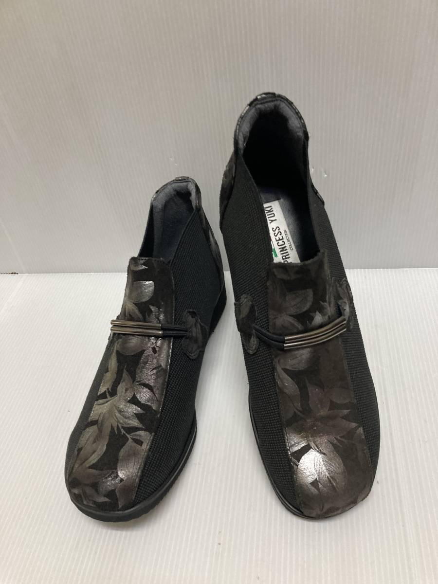 ●お買い得!婦人 革カジュアル プリンセスユキ MO2100 黒 22.5㎝ 幅EEE 日本製 靴の両サイドがゴムでよく伸び履きやすい