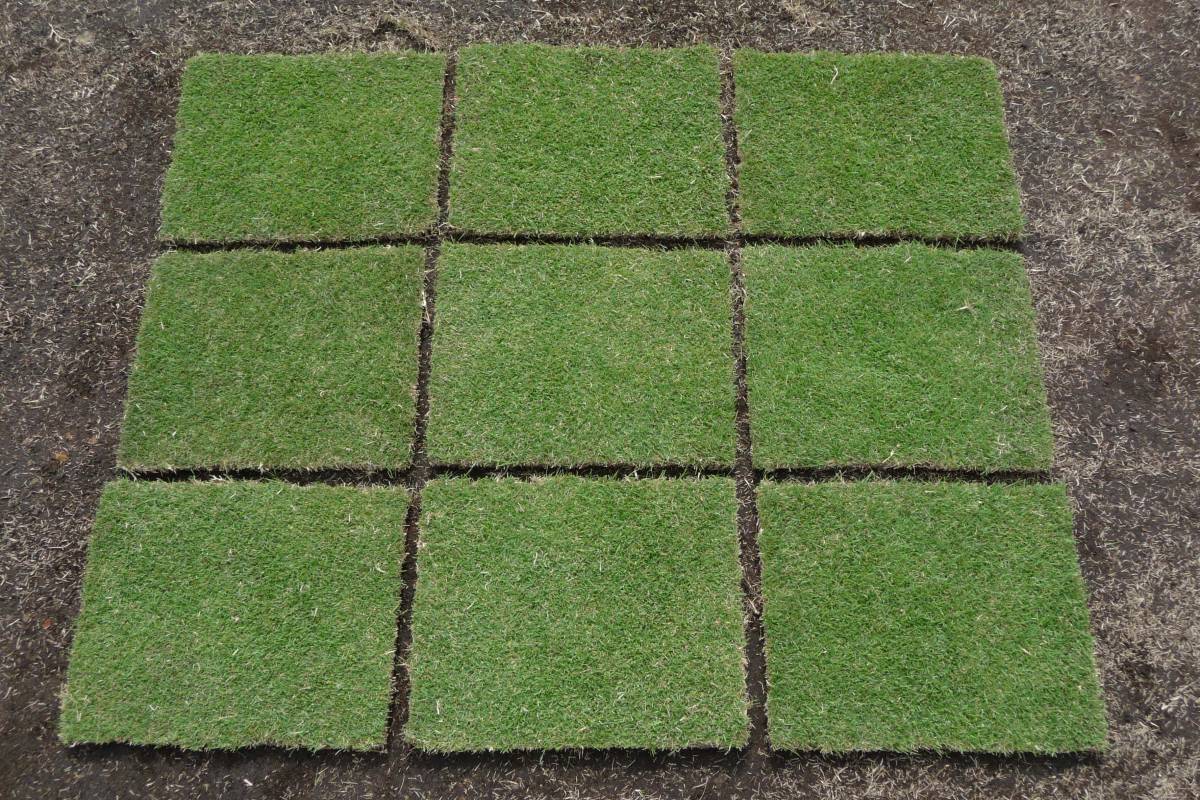 一般的に流通している芝は作業効率重視で出荷されている事が多く、9枚のほとんどが土合わせに