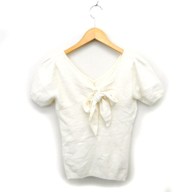 ストロベリーフィールズ STRAWBERRY-FIELDS ニット セーター リボン アンゴラ混 ショート リブ プランジングネック 半袖 アイボリー /NT31 レディース