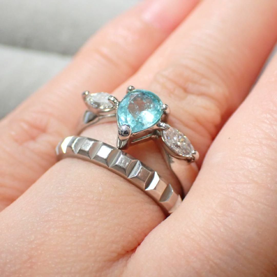 デザイン性のあるパライバトルマリンリングです。ペアシェイプのパライバトルマリンが目を惹き、重量感のあるしっかりとしたリングですので満足いただけると思います^_^