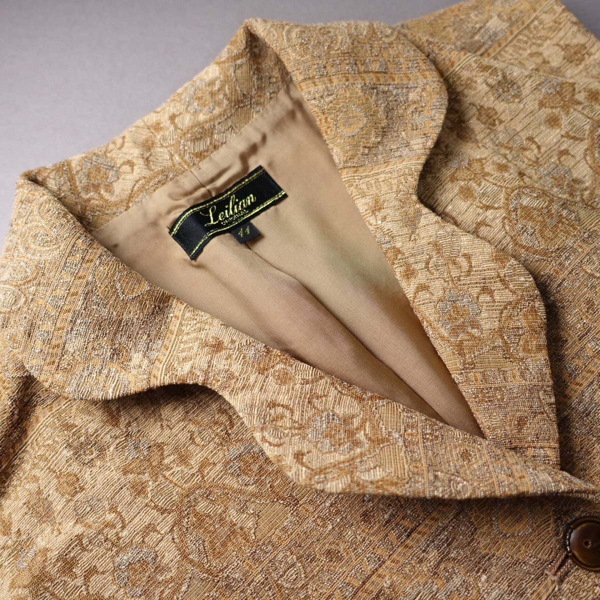 ご覧いただきありがとうございます。 気持ちのよいお取引となるよう心がけておりますので どうぞご安心ください。 Leilian/レリアンの日本製/ウール混/シルク混ベストです。 お色はベージュです。 サイズ表記は 11 実寸も合わせてご参考ください。 ■着丈:68.0 cm ■身幅:47.5 cm ■肩幅:37.0 cm (すべて平置き採寸です。多少の誤差はご了承下さい。) 写真の通り使用感は少なく、気持ちよくお使いいただけるかと思います。 21485 |