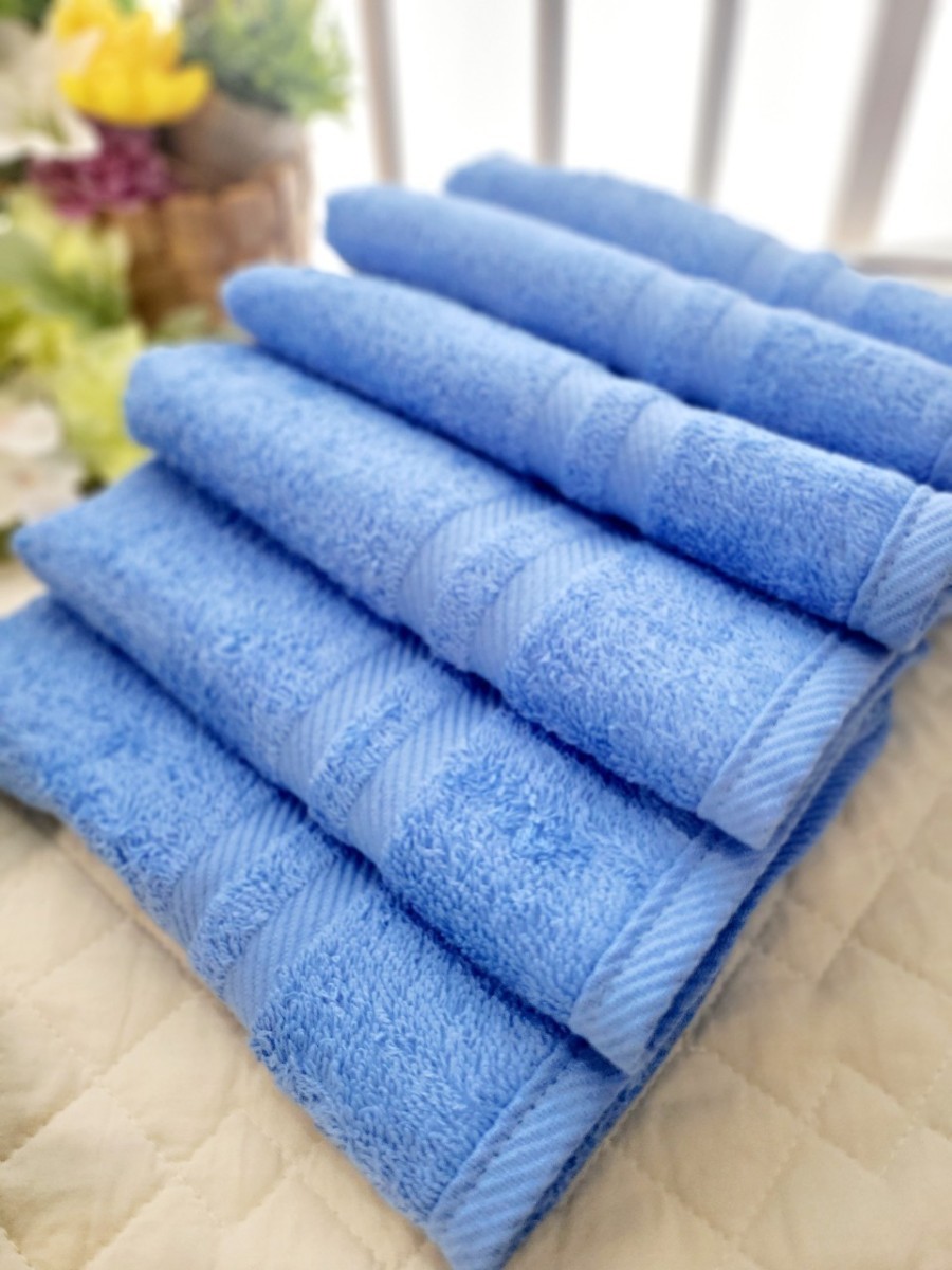 到着したタオルは、最初タオルのパイル部分が寝ている状態ですが、ご使用前に洗濯して干して乾かすと、パイルが立ち戻り本来の優しく気持ちの良い肌触りに戻ります。