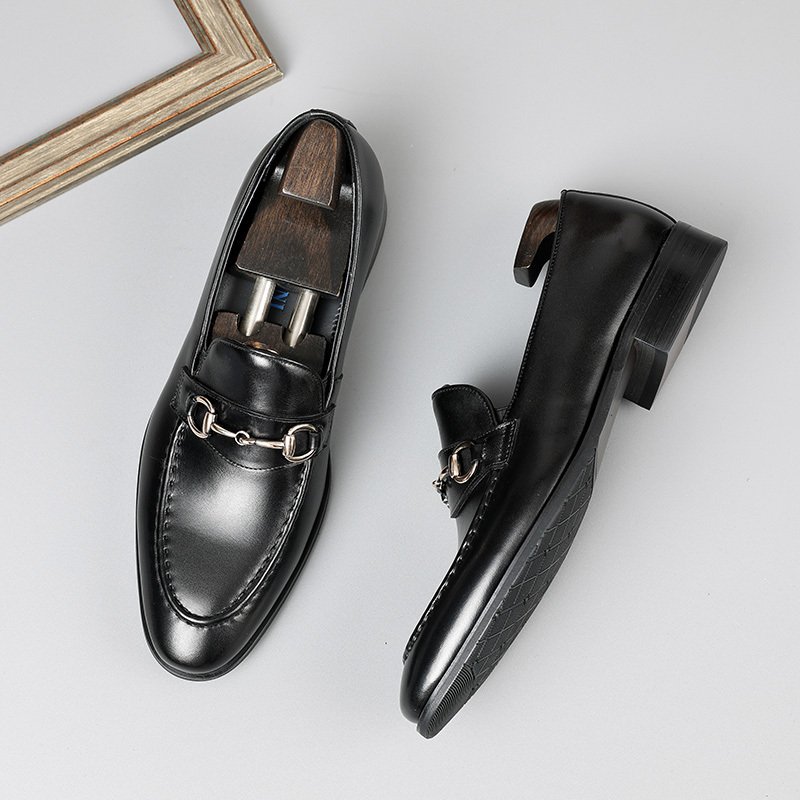 新作/新品/メンズ ビジネスシューズ紳士靴 本革 ビット ローファー スリッポン ブラック SE25.5cm