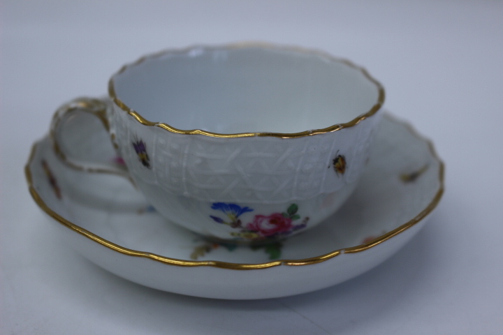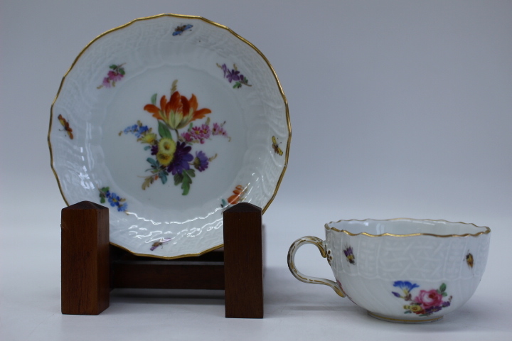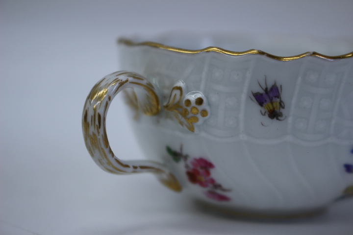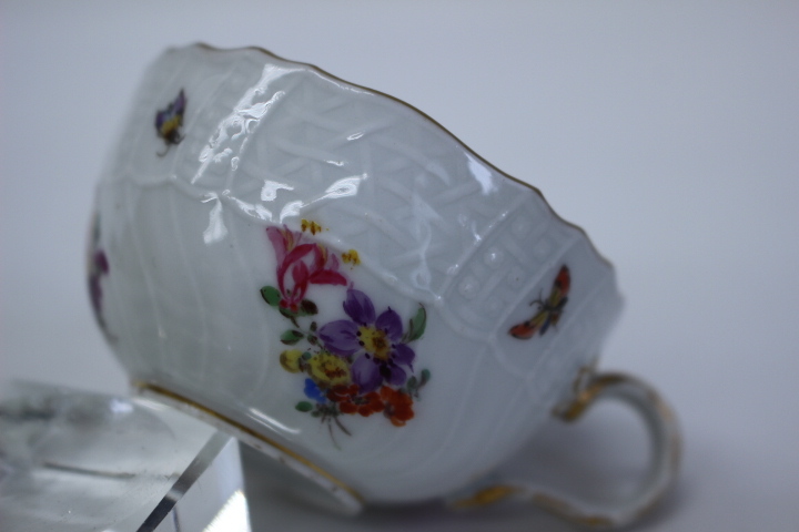 d453 MEISSEN マイセン ノイブランデンシュタインレリーフ 昆虫5つ花 小さめ カップ&ソーサー デミカップ ティーカップ コーヒーカップ
