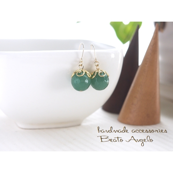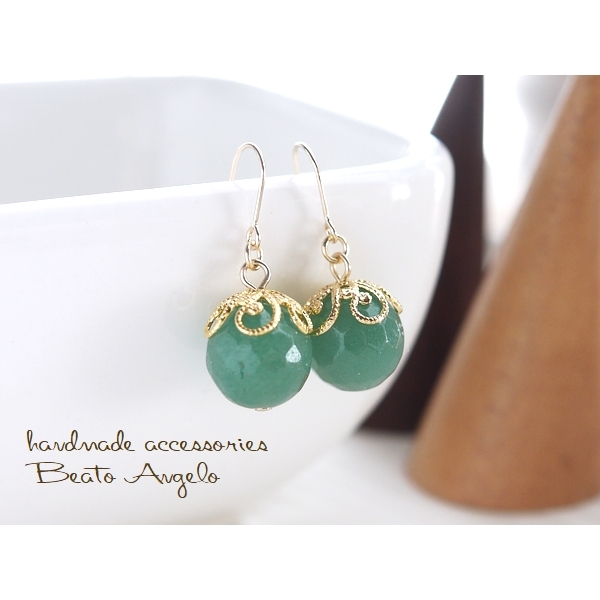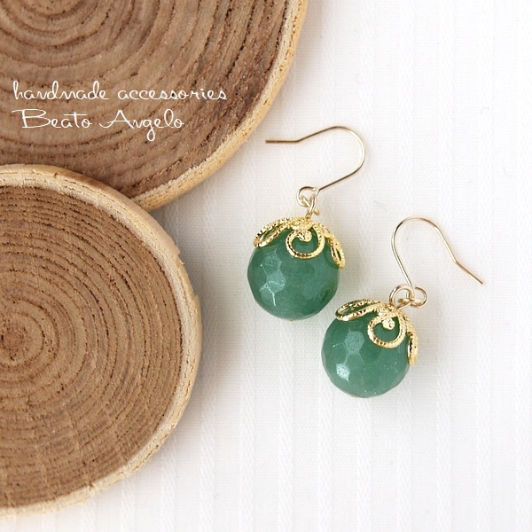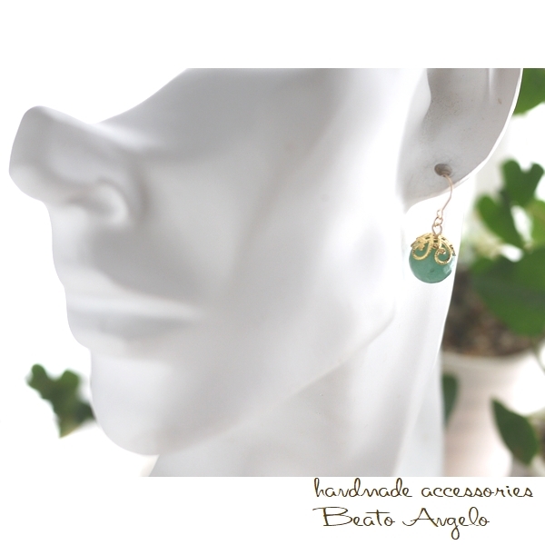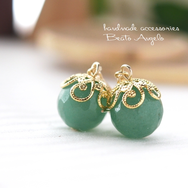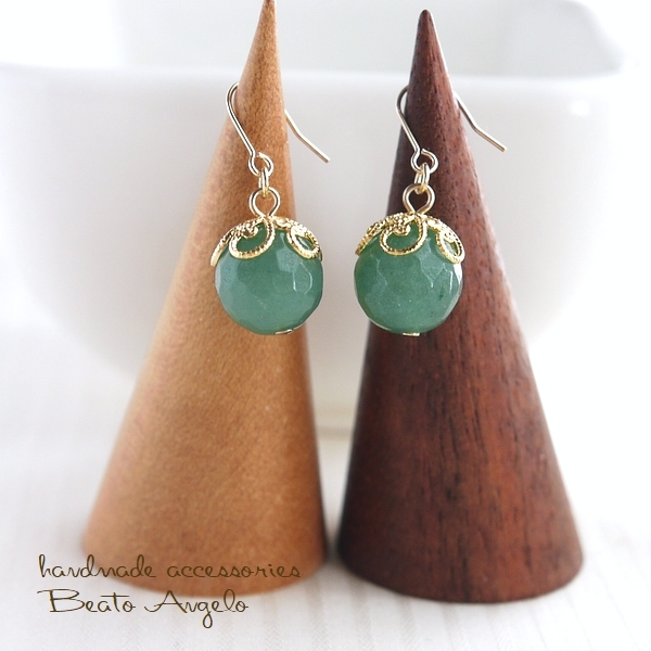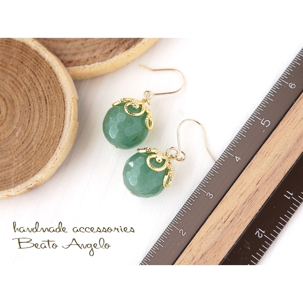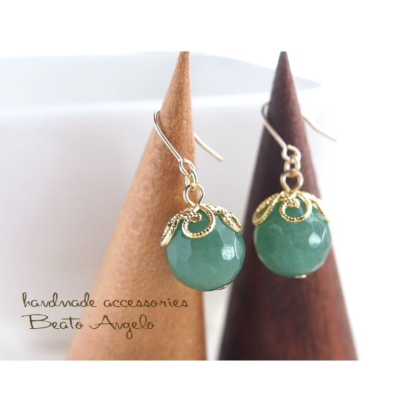 天然石アベンチュリンの一粒ピアス(p-052)G
