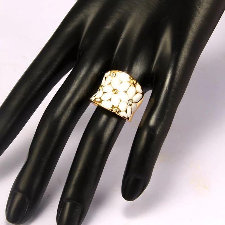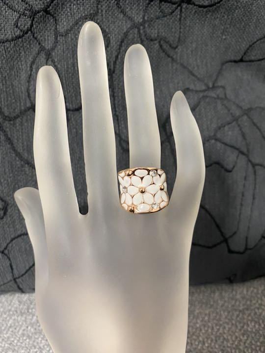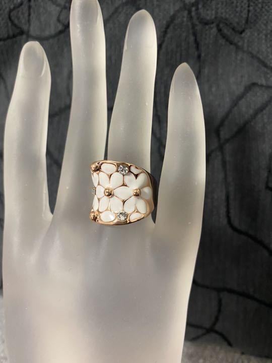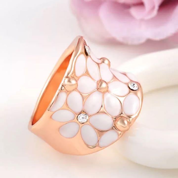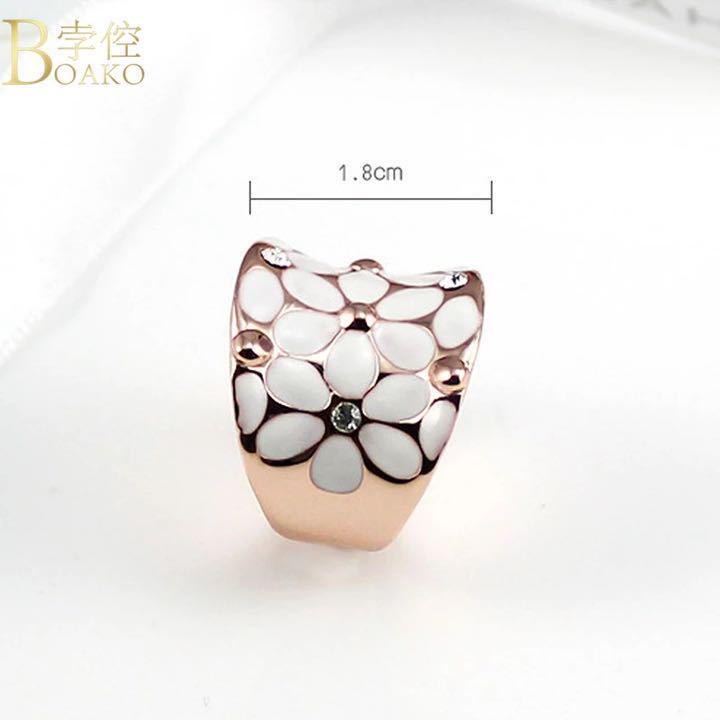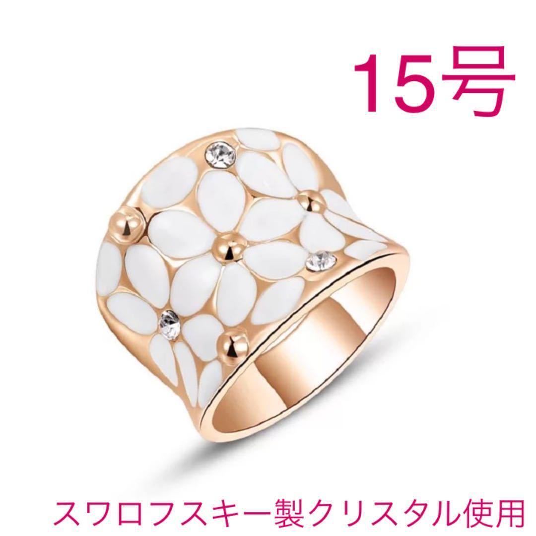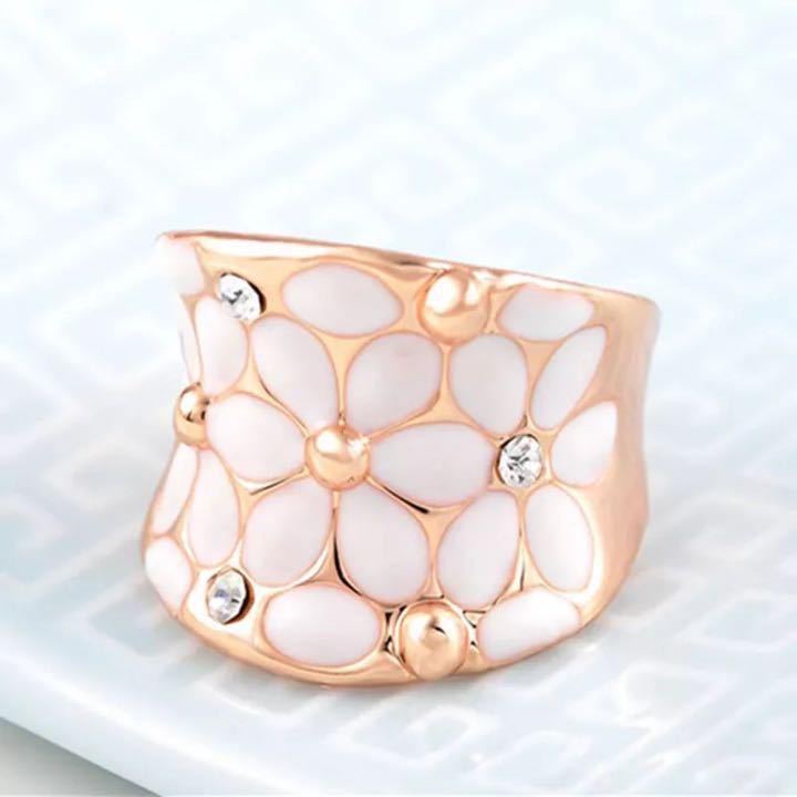 (1053)15号 ピンクゴールド可愛すぎるレトロフラワーワイドリング 指輪 スワロフスキー製クリスタル使用