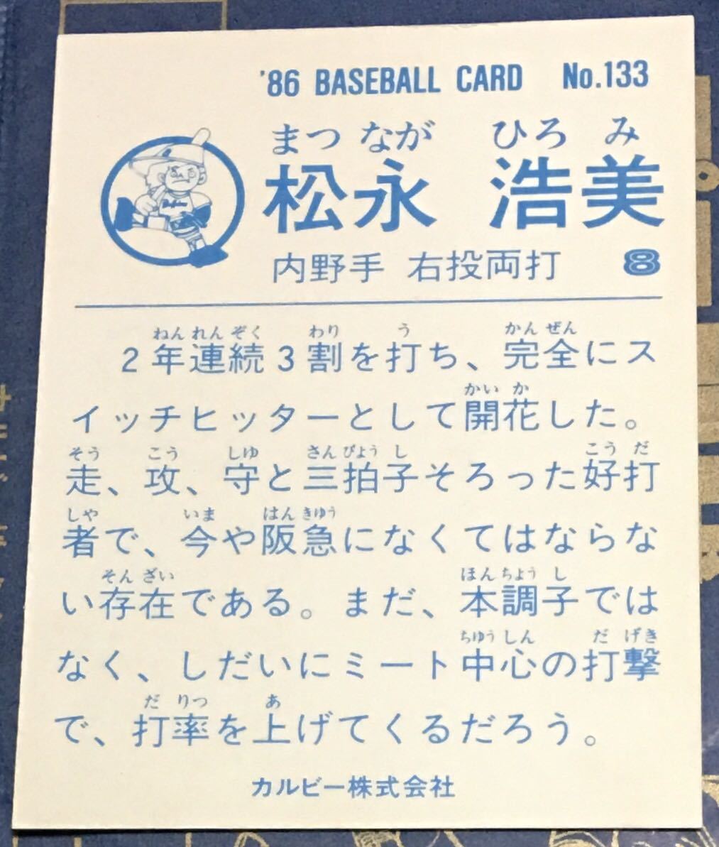 1986年カルビー 松永浩美 阪急ブレーブス No.133になります。