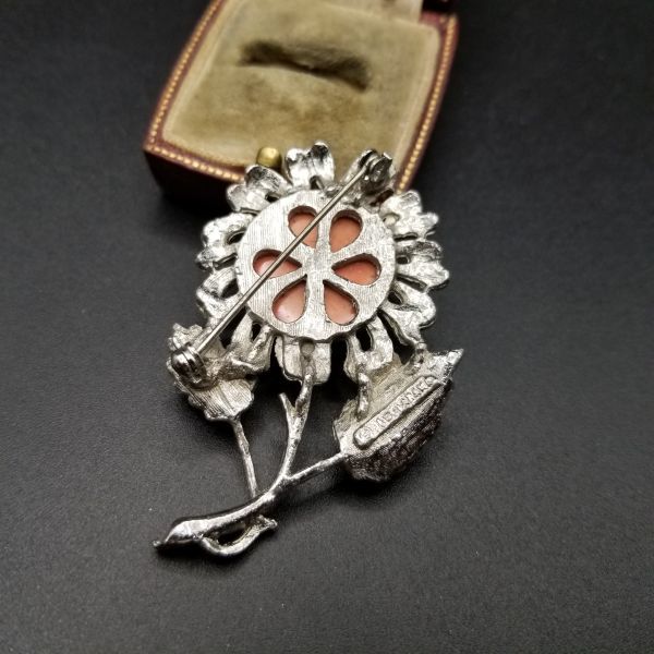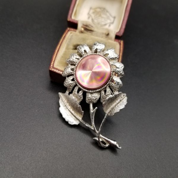 1960年代 Jewelarama マーブルピンク ラウンド カボション フラワー ひまわり 大ぶり ヴィンテージ ブローチ ジュエリー 輸入 Y9-B