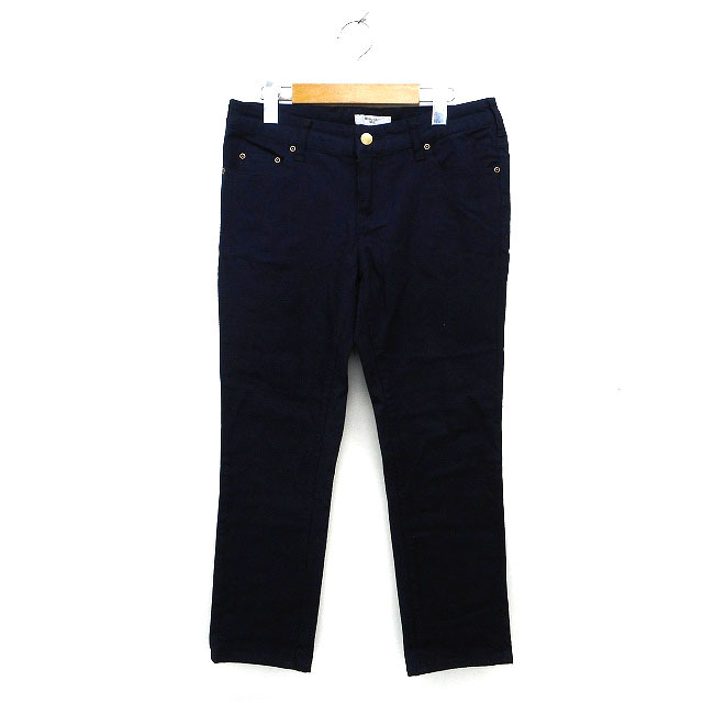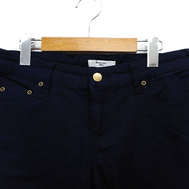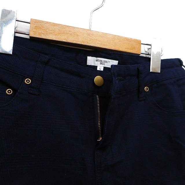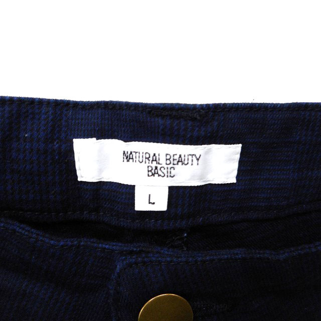 ナチュラルビューティーベーシック NATURAL BEAUTY BASIC パンツ テーパード ローライズ グレンチェック コットン 綿 L 紺 ネイビー