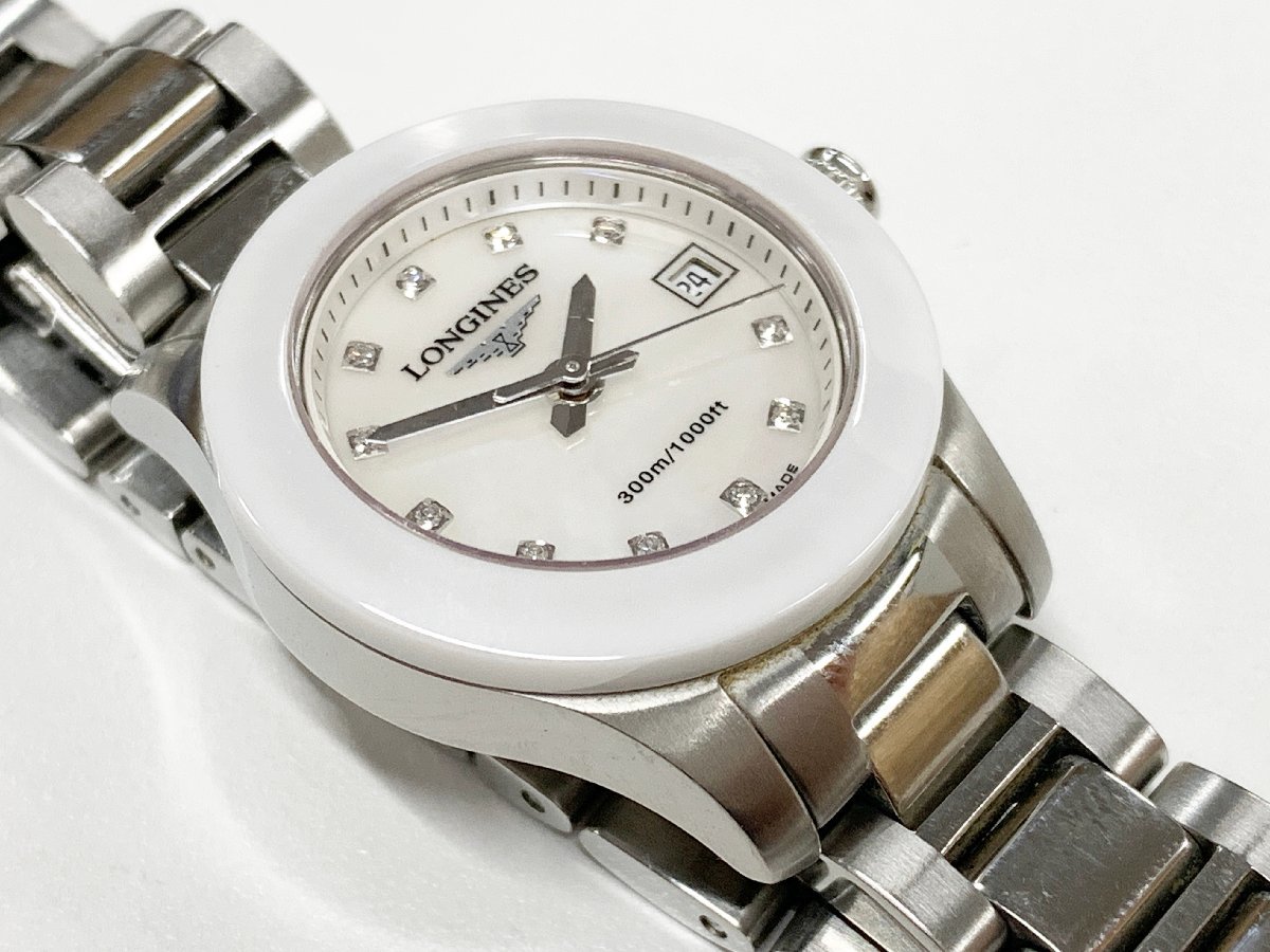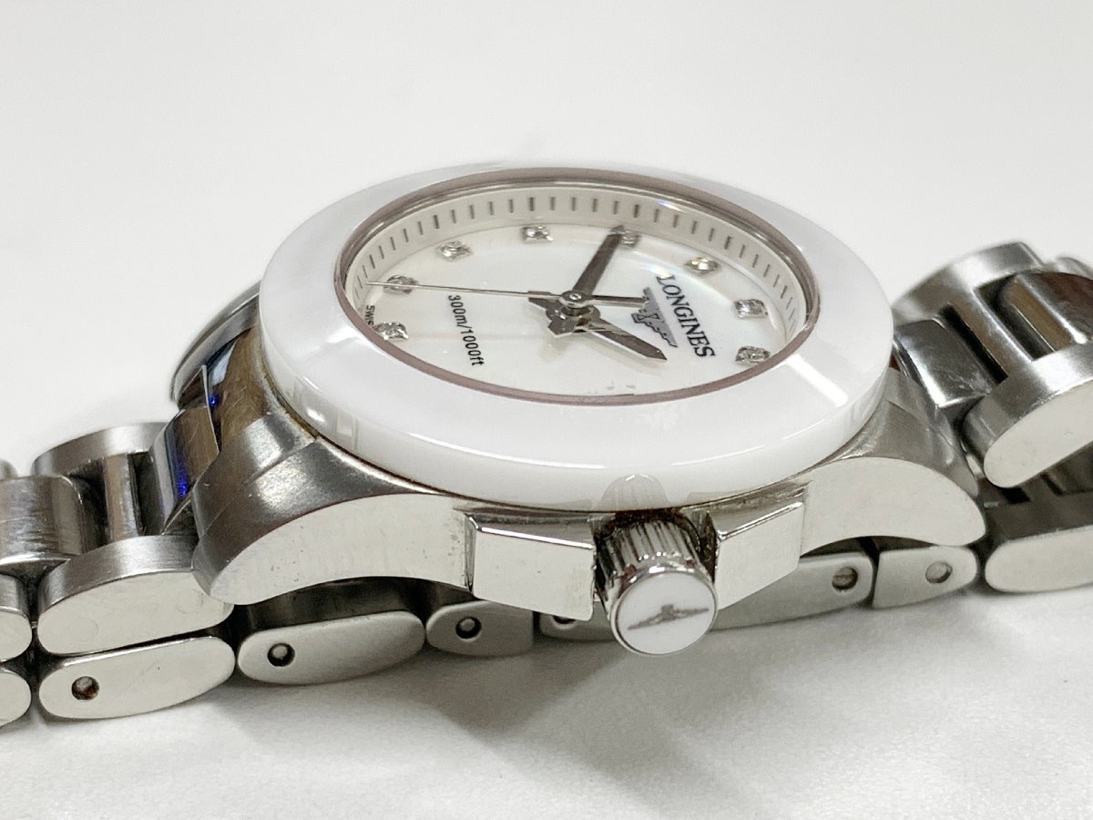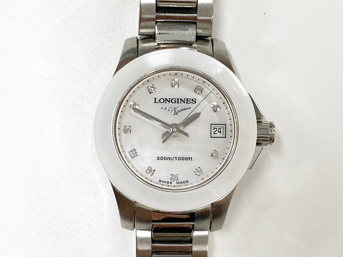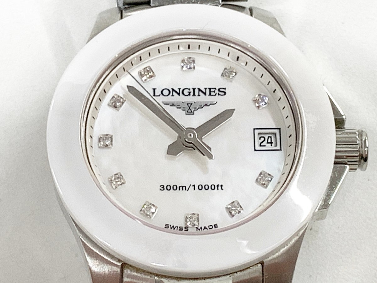 LONGINES ロンジン Conquest コンクエスト レディース腕時計 防水 クォーツ ステンレス シルバー ダイヤ 定価19.6万円 L3.157.4 稼働品(他298)