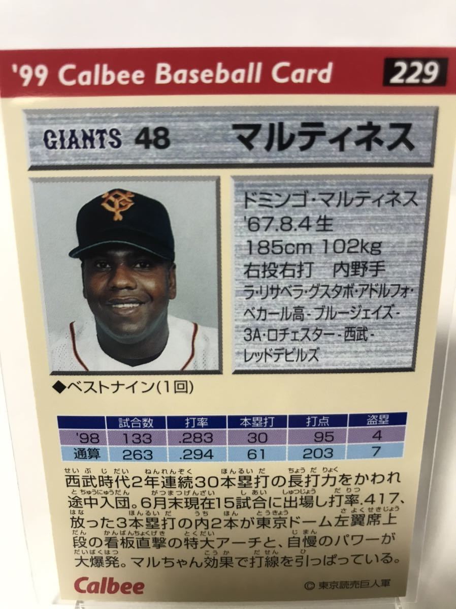 マルティネス 1999 229 カルビー 読売ジャイアンツ プロ野球チップス