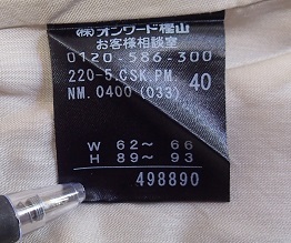 サイズ/40  ウエスト 62~66㎝、ヒップ 89~93㎝