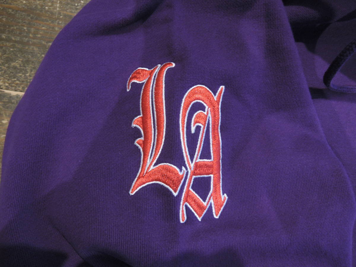 右ソデにはLAの刺しゅう、左ソデにはゴリラ、ブランドロゴ、創業年の1991がそれぞれ刺繍してあり、豪華な仕様です。
