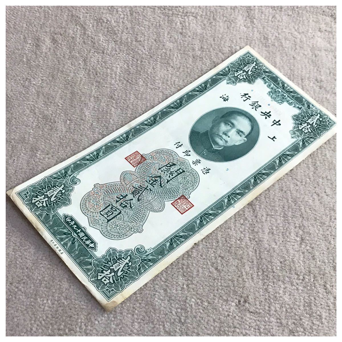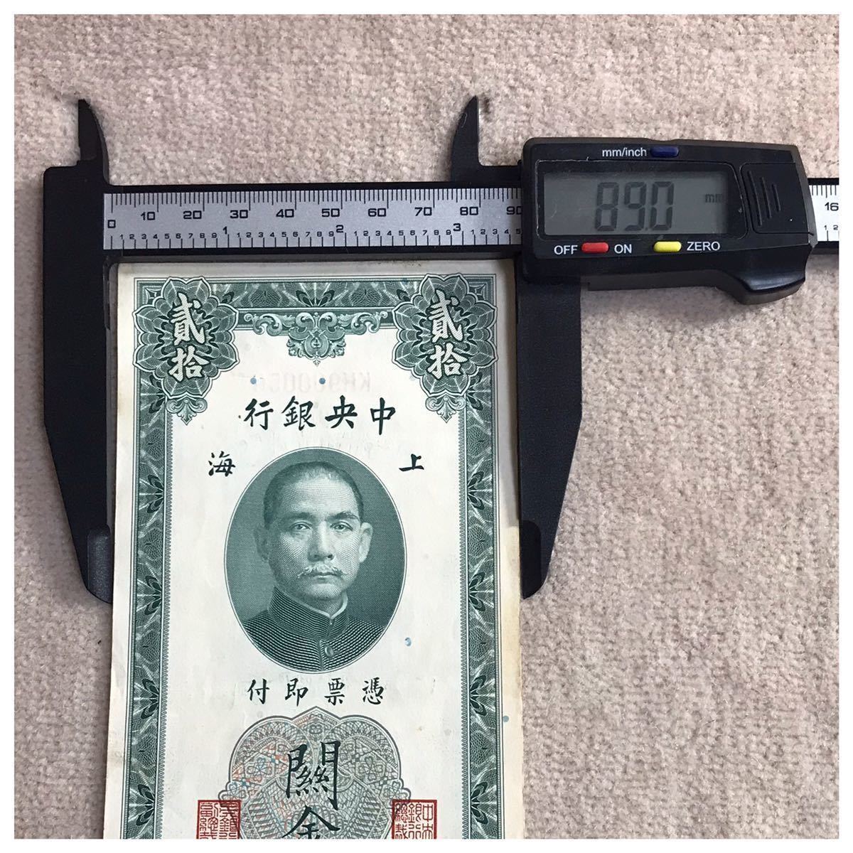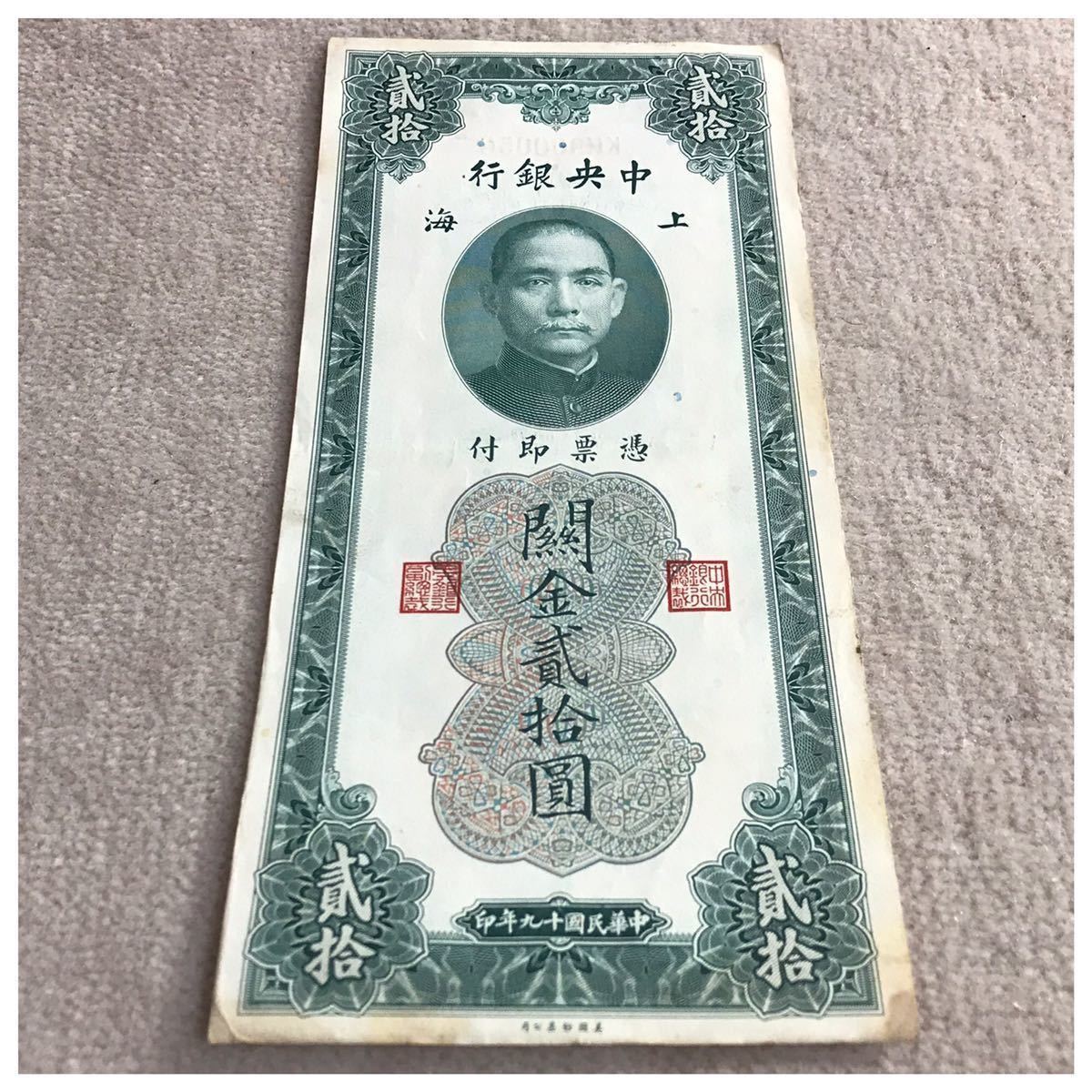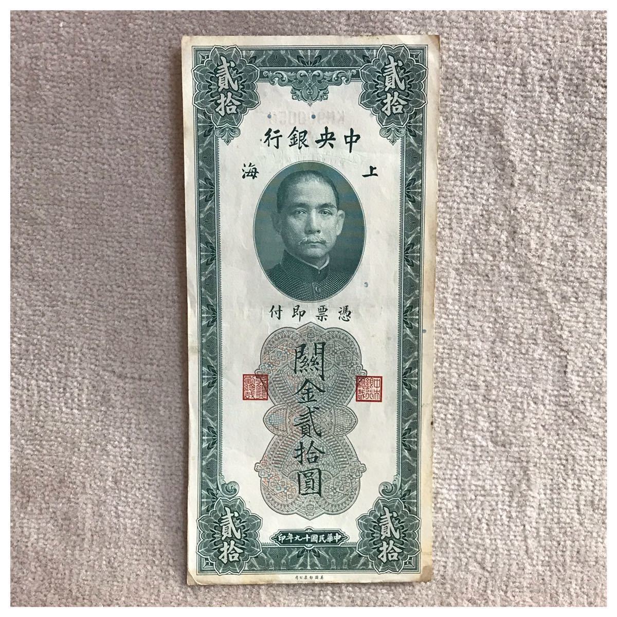 中国紙幣 中国中央銀行 上海 貳拾圓