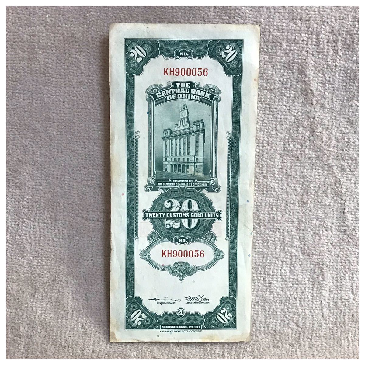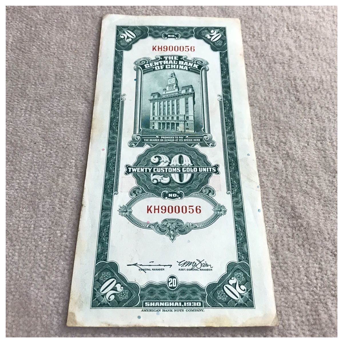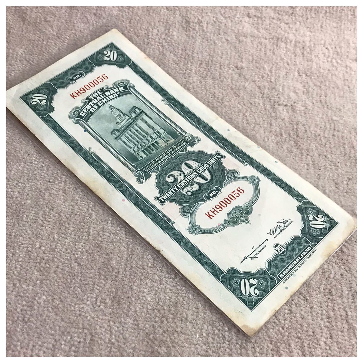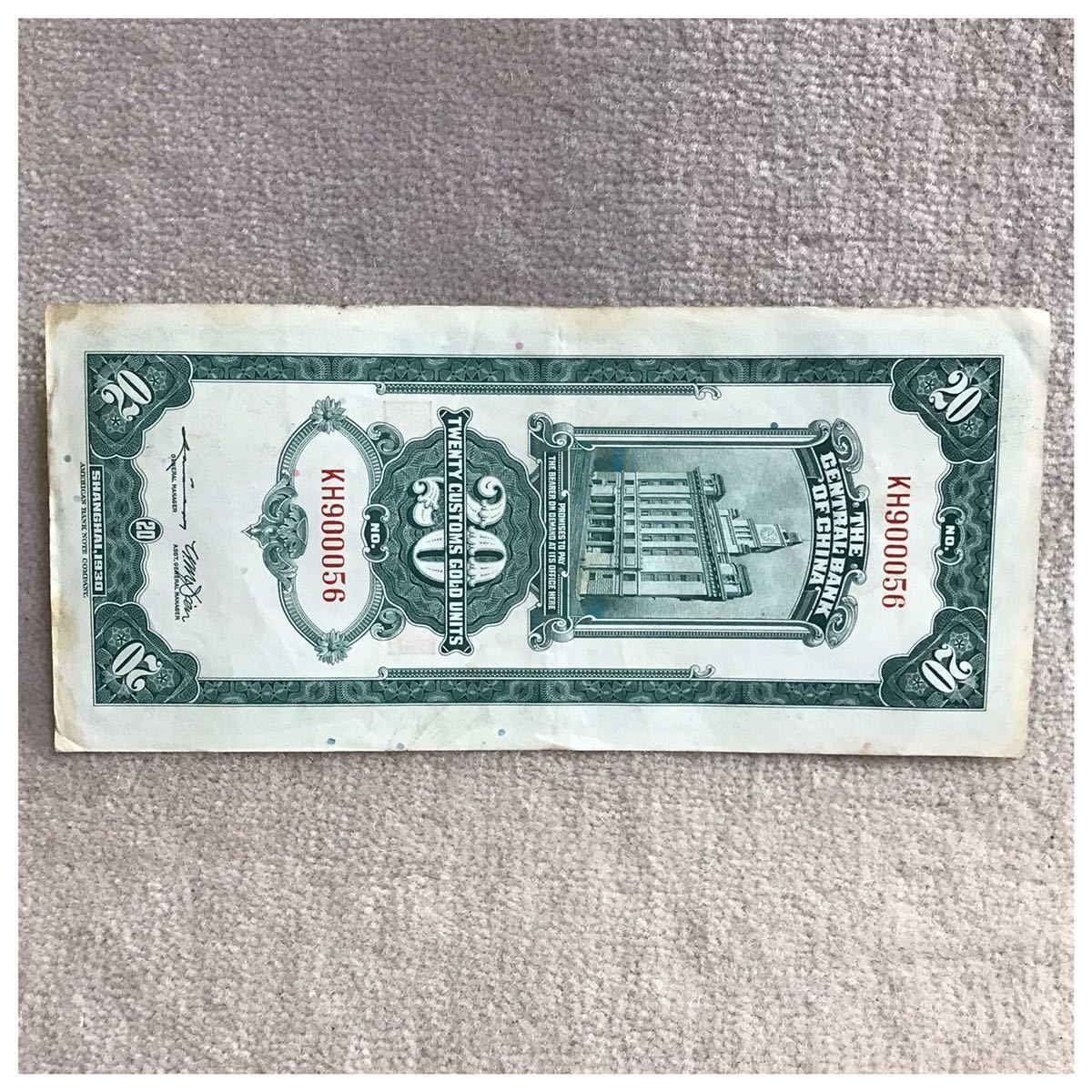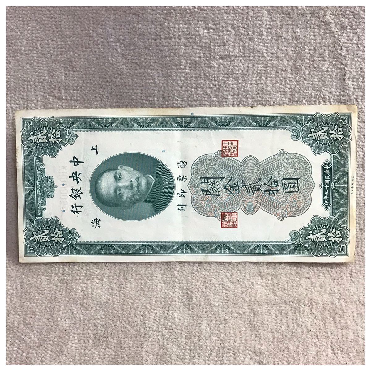 中国紙幣 中国中央銀行 上海 貳拾圓