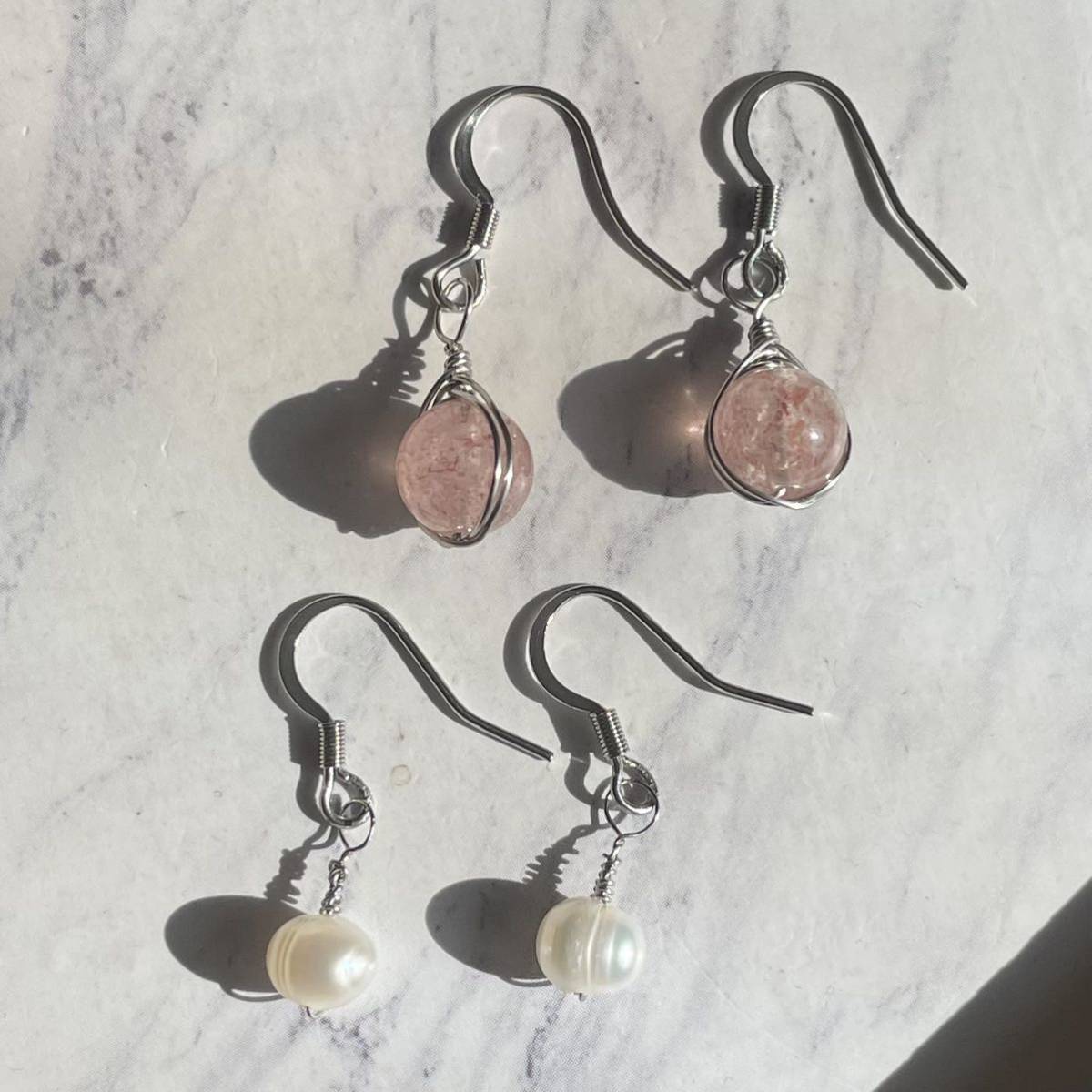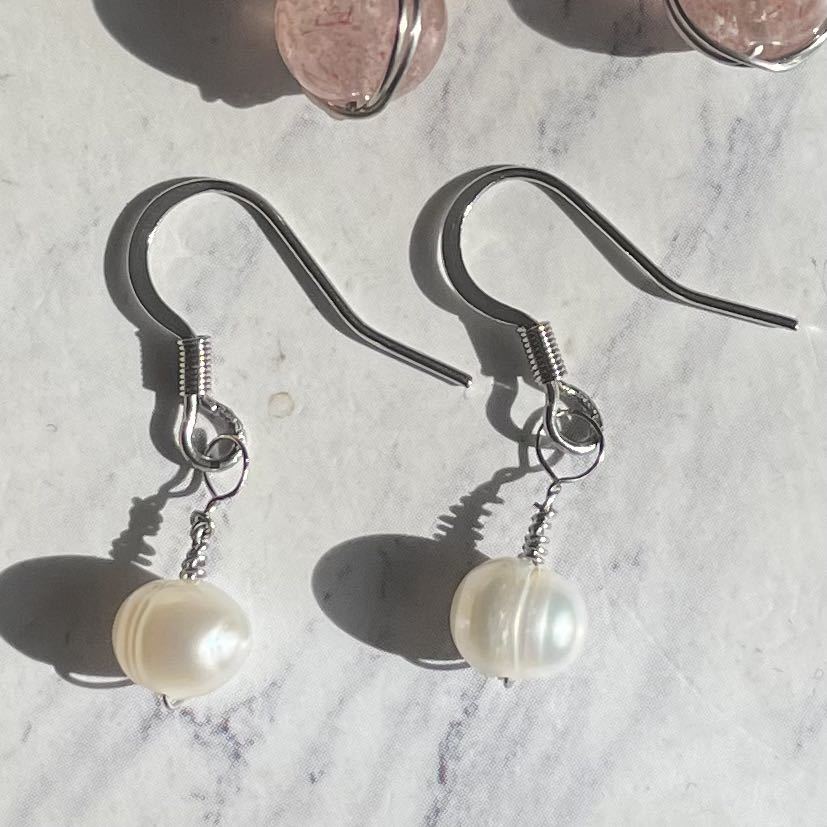 ピンクエピトード 丸玉8㎜、淡水パール ポテト型の天然石を使用。