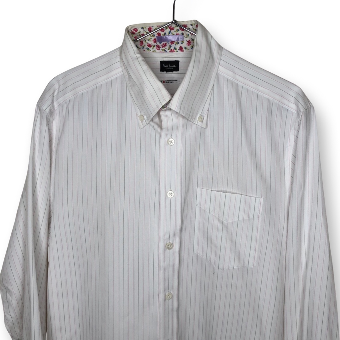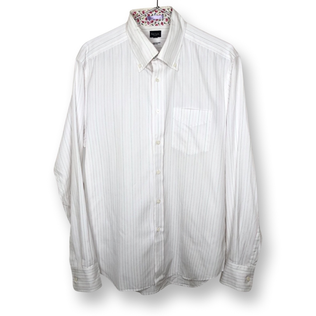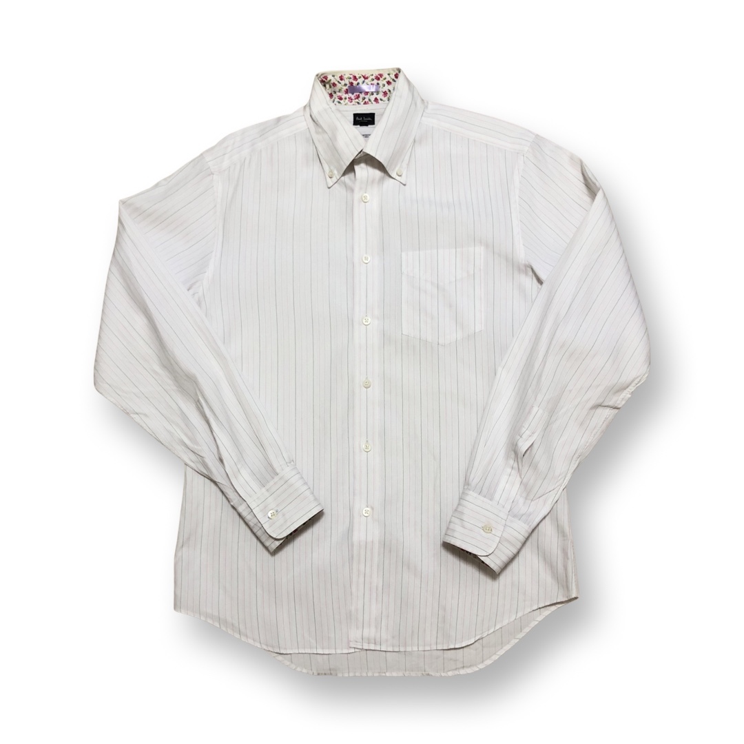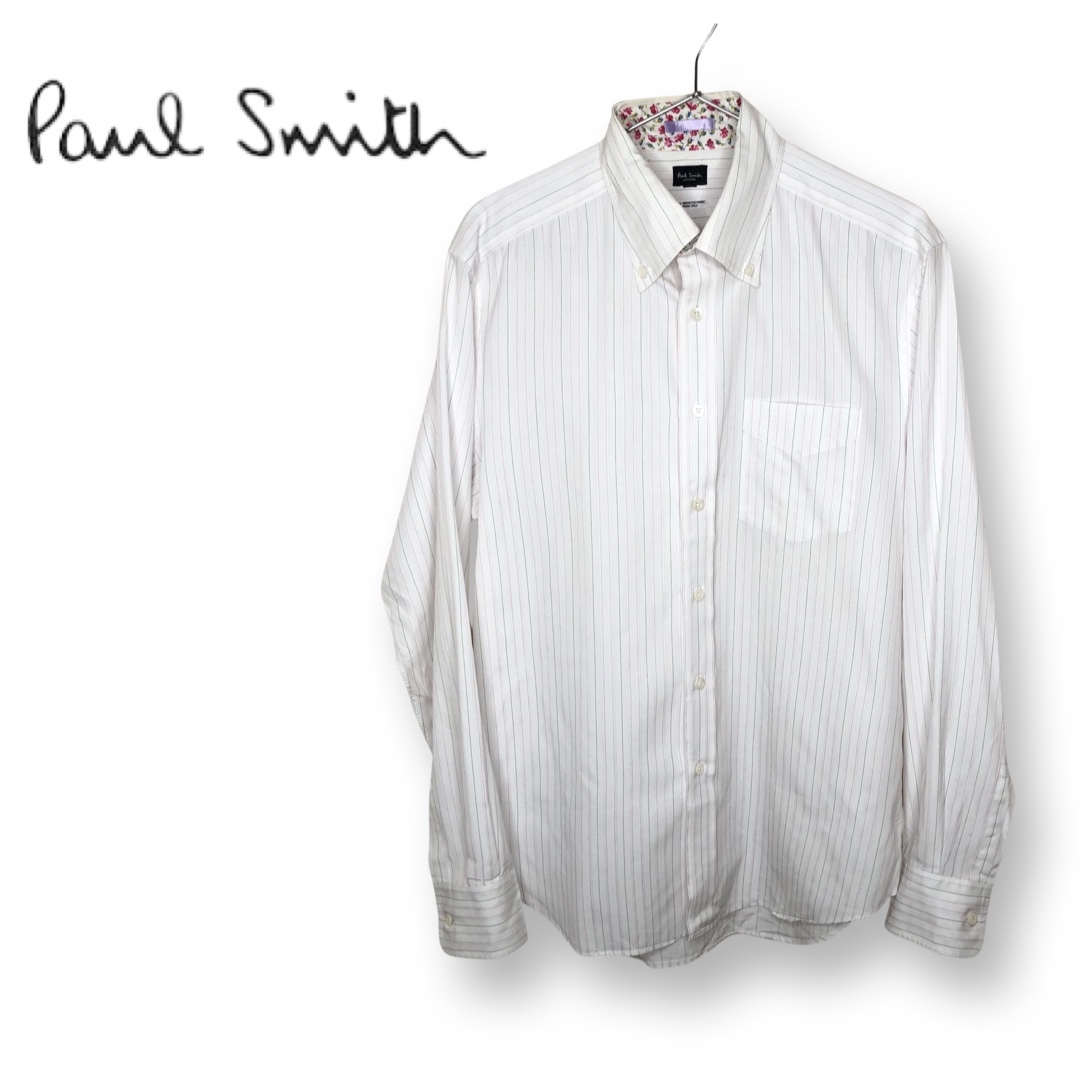 ☆ポールスミス Paul Smith☆メンズ ストライプ柄 ボタンダウン 長袖 シャツ ワイシャツ カジュアルシャツ 白 ホワイト size L 管:D:11