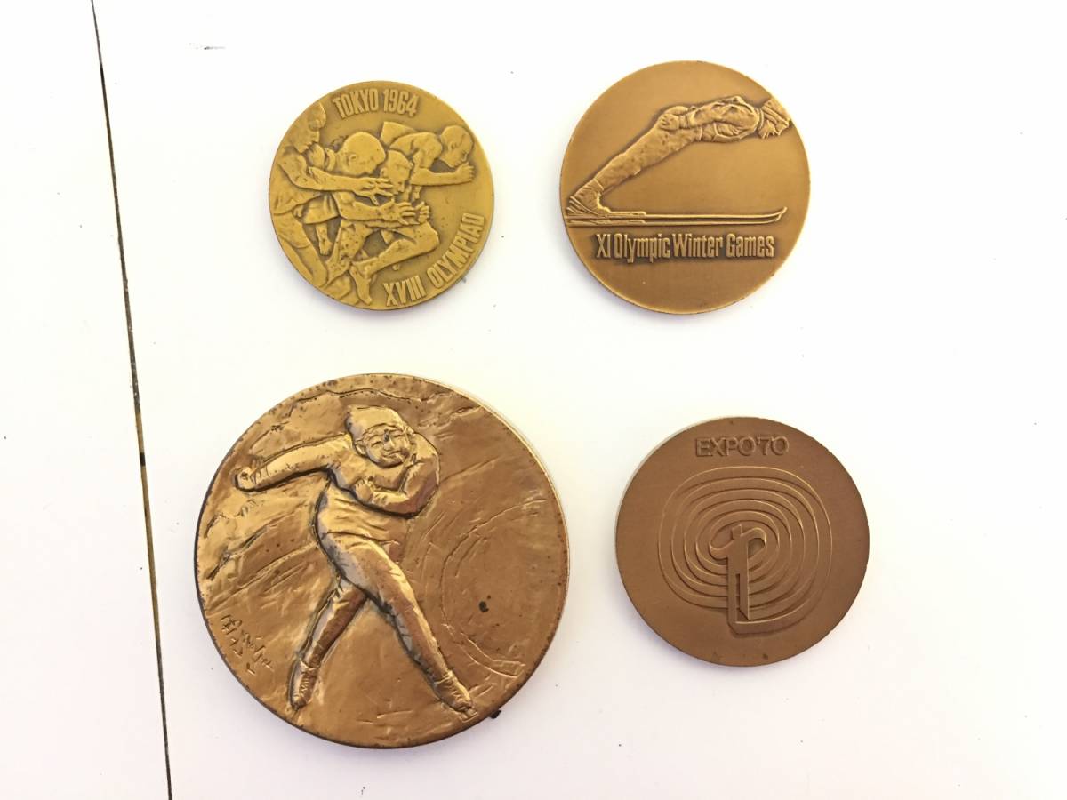 ◎サイズ メダルの直径×厚さ・重さ 画像3 約50×5mm・約92g 画像4 約30×3mm・約16g 画像5 約32×2mm・約15g 画像6 約33×3mm・約16g 4点セットケース込みの 総重量:約325g ※多少誤差は生じると思います。 -------------- ◎状態 中古。長期保管品。年代物。 画像1にあるものが全てです。 致命的なダメージは特に無いと思いますが、 長期保管品ですので、それなりに 擦れや変色などあると思います。 ケースは全体的に傷や汚れが付いています。 画像9のケースは蓋がすぐ外れてしまいます。 美品ではありません。 --------------