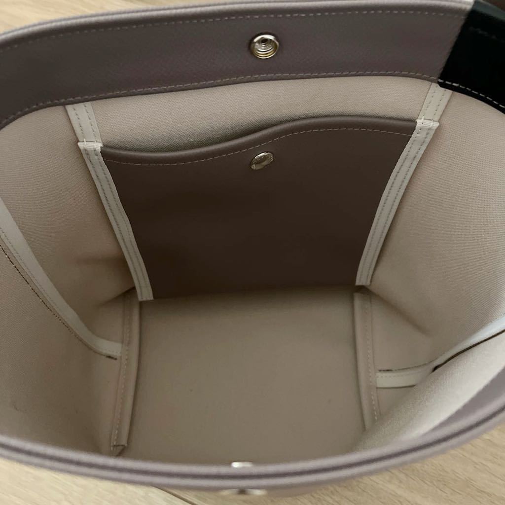 size : W.(top)32cm (btm)19cm H.26cm D.13cm ハンドルの長さ60cm、幅5cm 重量 : 350g