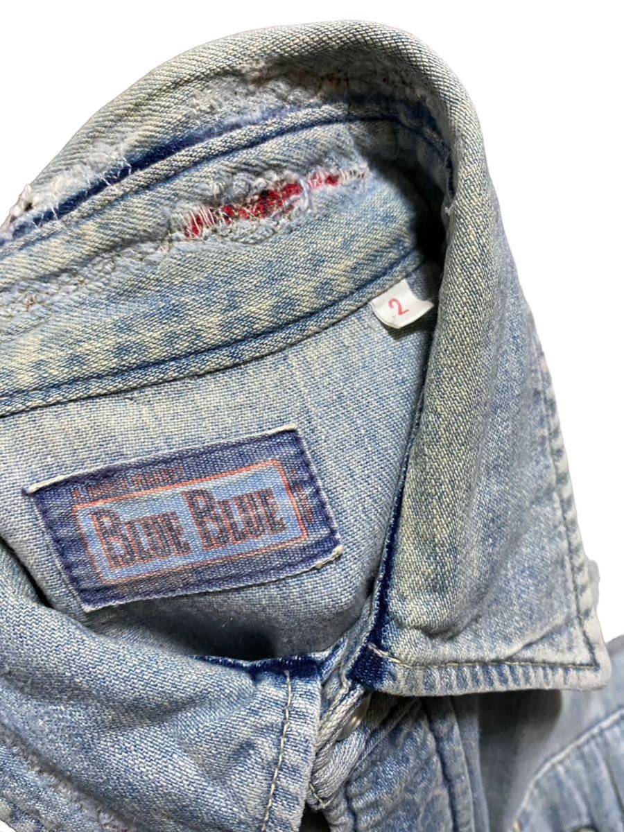 名作 BLUE BLUE ブルーブルー ダメージ加工 デニムシャツ 2