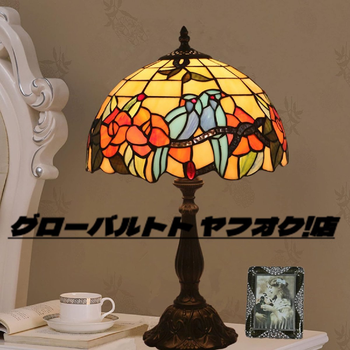 人気新作★芸術品◆ステンドランプ 花柄 室内装飾 ステンドグラス レトロな雰囲気 ティファニー技法 テーブルスタンド 照明