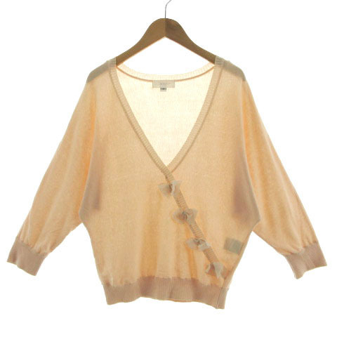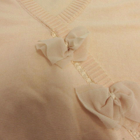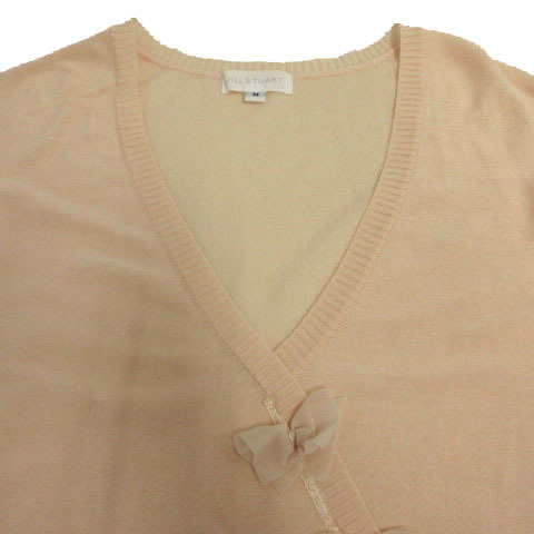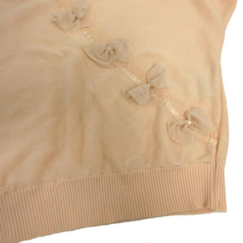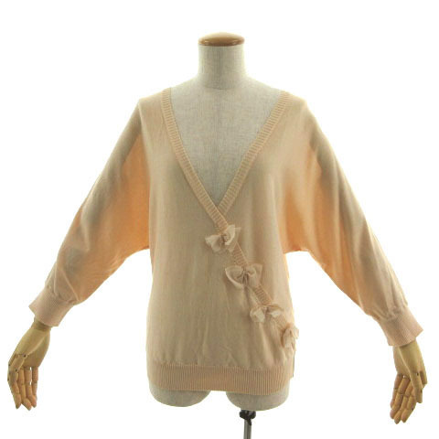 ジルスチュアート JILL STUART ニット セーター カシュクール 長袖 レースリボン 日本製 ピンクベージュ系 M レディース