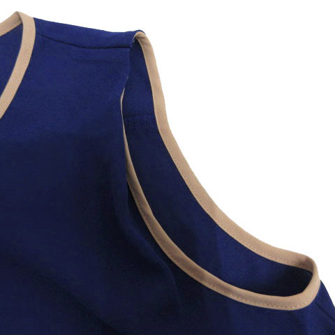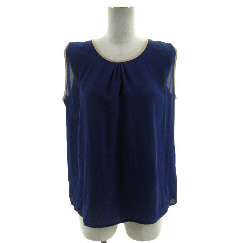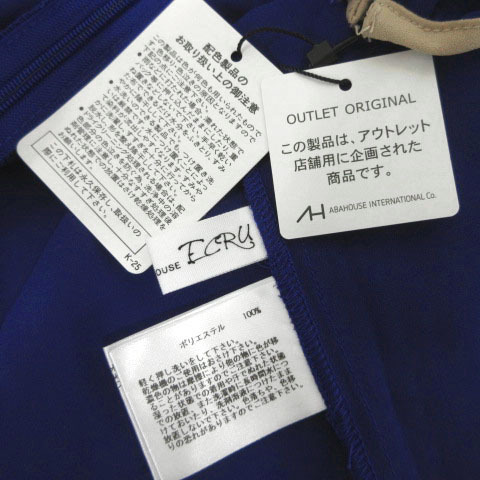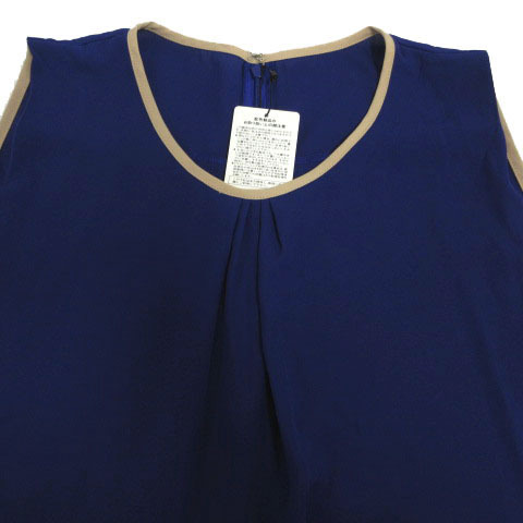 未使用品 アバハウス ABAHOUSE ECRU カットソー ノースリーブ ギャザー パイピング ブルー系 青系 ブラウン 茶 F レディース