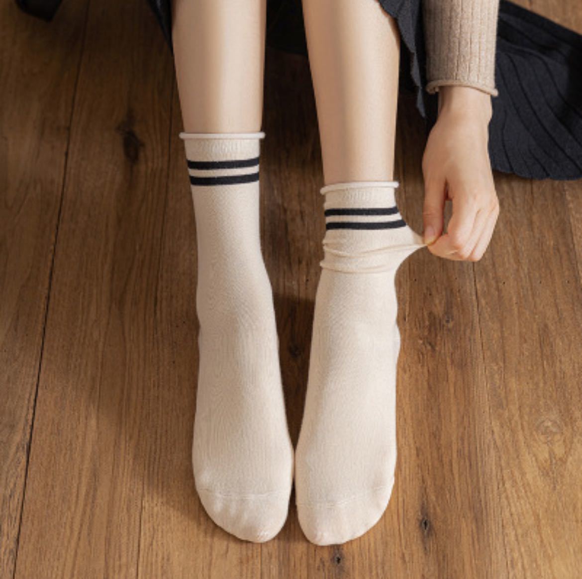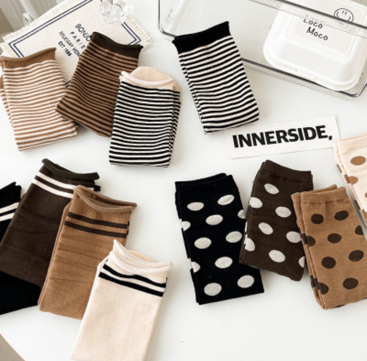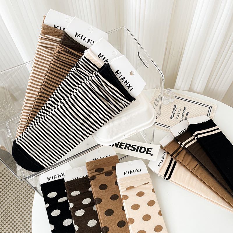 商品名:LADIES ソックス 肌に優しいコットン ポイント柄 ラインソックス ストライプ 可愛い 淡色  レディース 靴下
