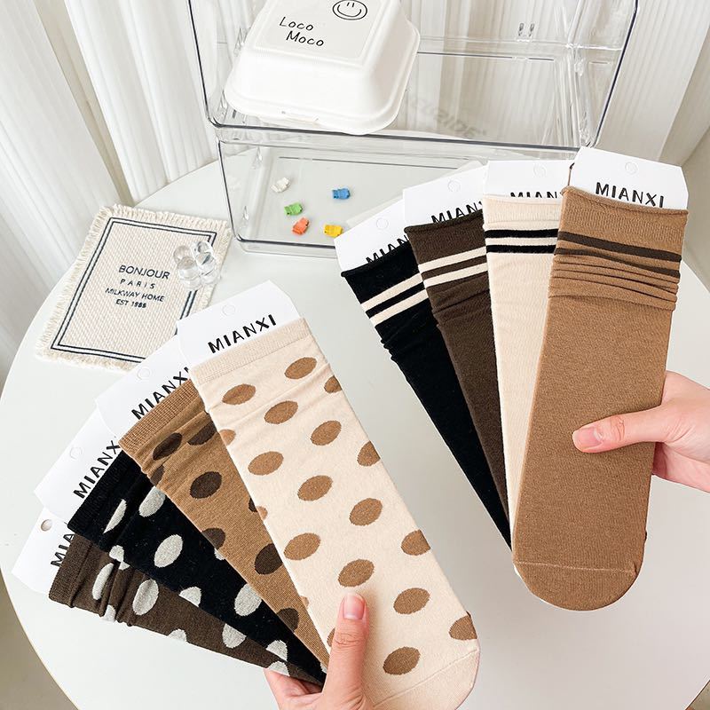 LADIES ソックス 肌に優しいコットン ポイント柄 ライン ストライプ 可愛い 淡色