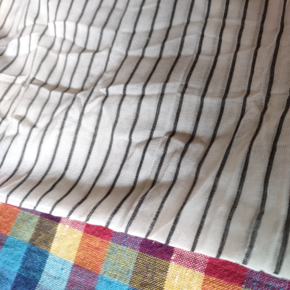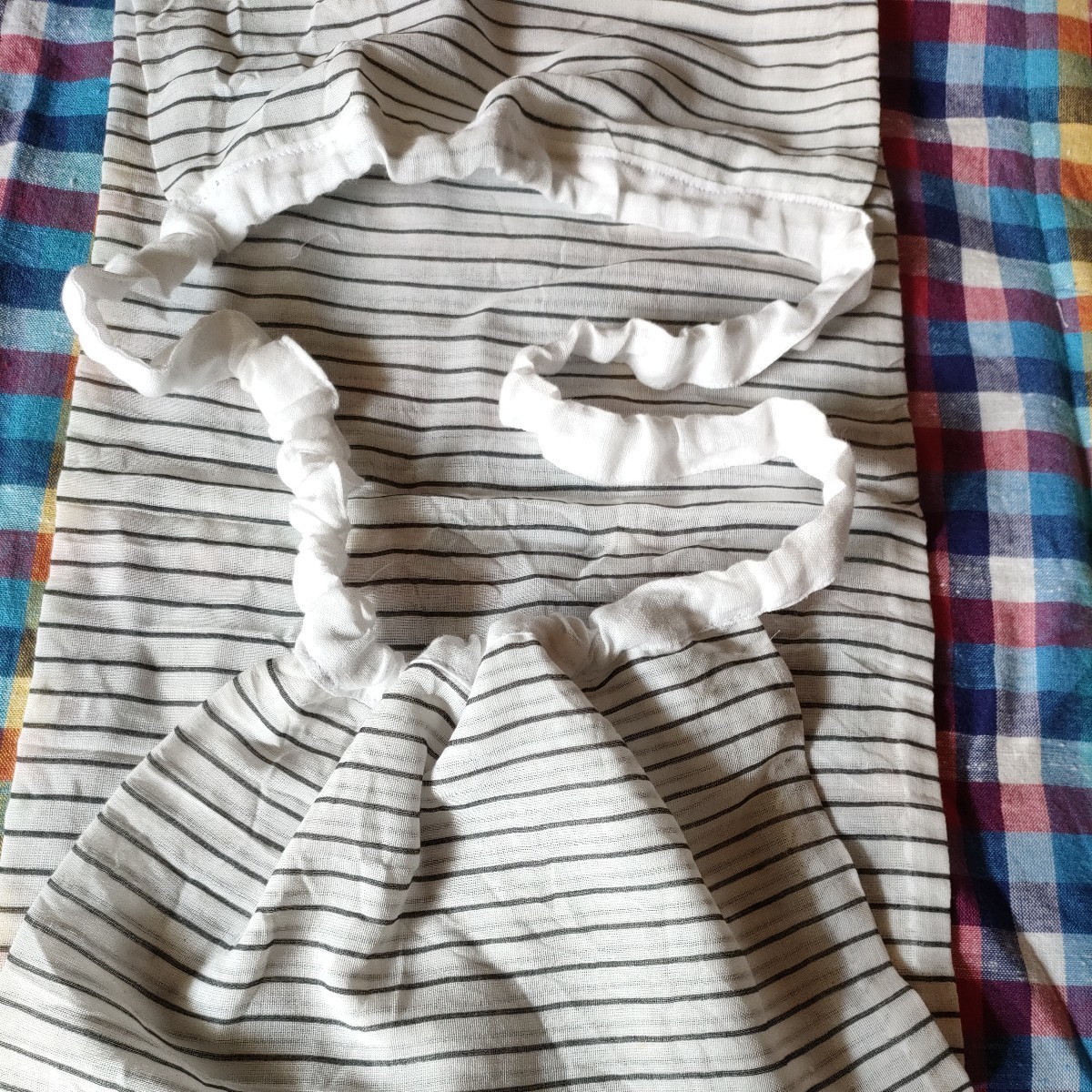 本体ストライプのほうは透けたストライプ ポリ混の2重のかさね