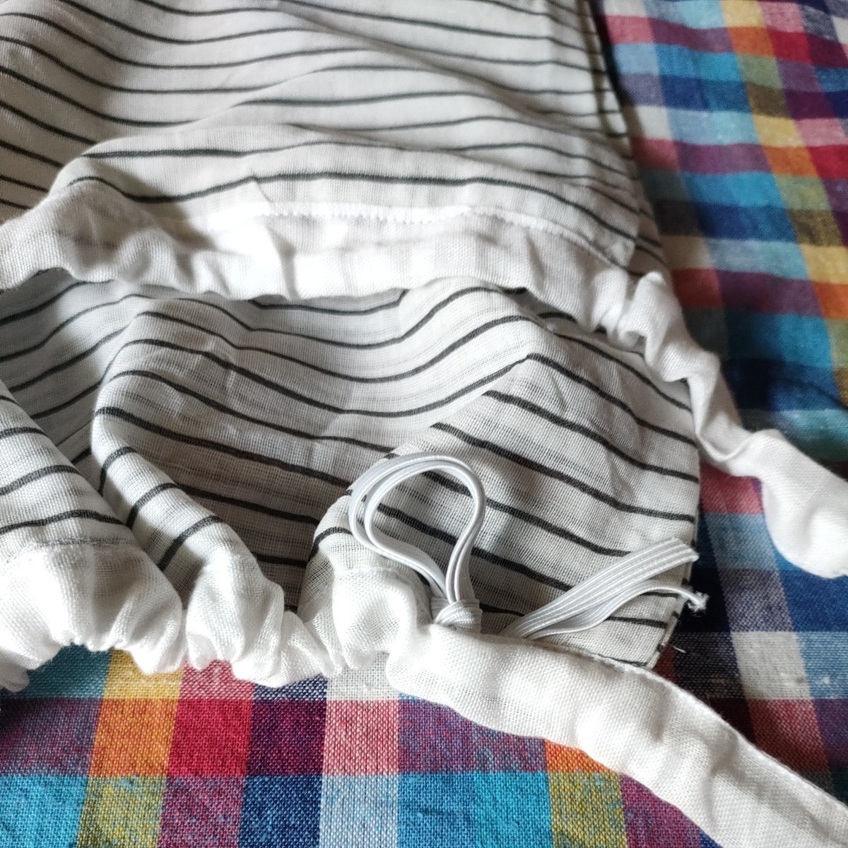 基本ゴム紐通しの部分はウエスト部分にあけておりますので