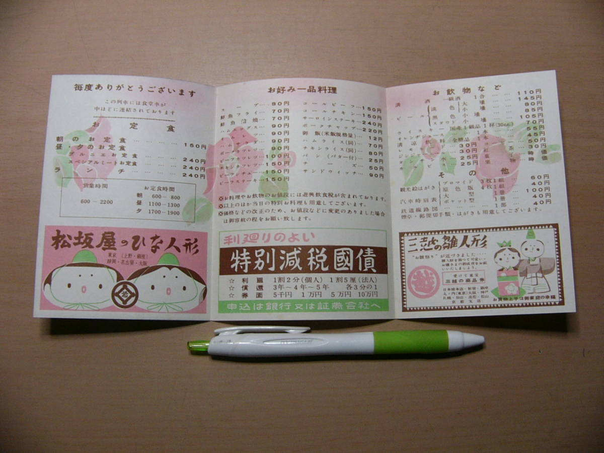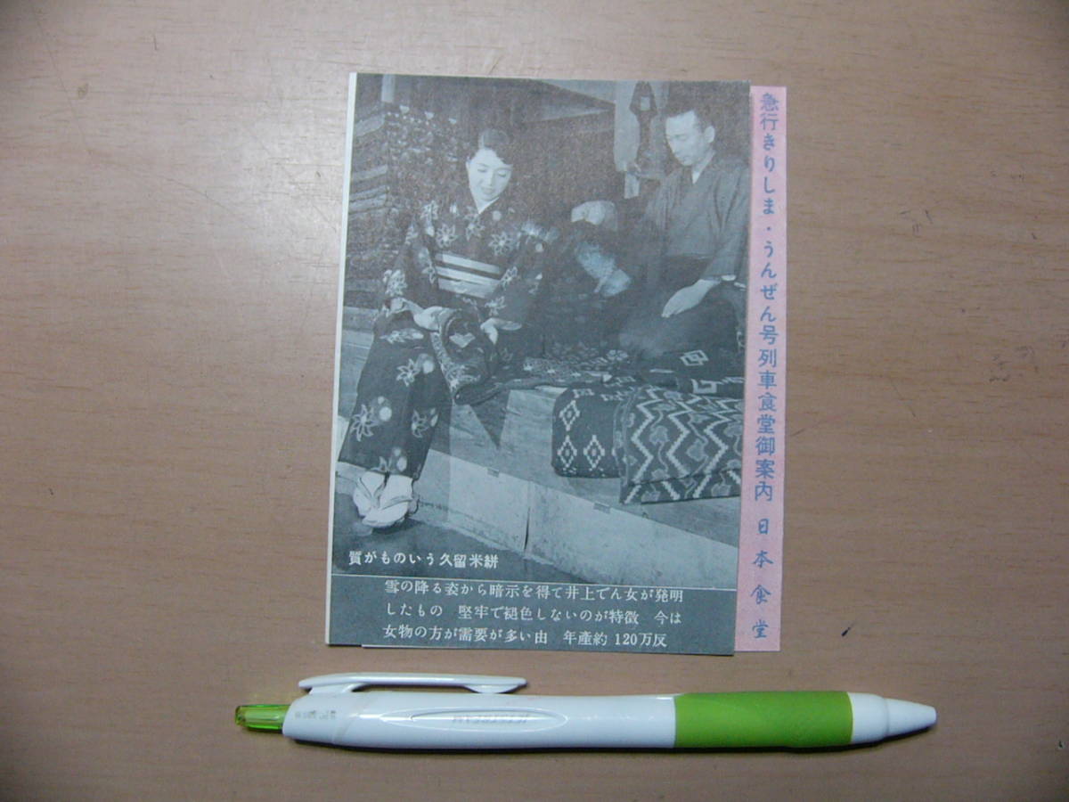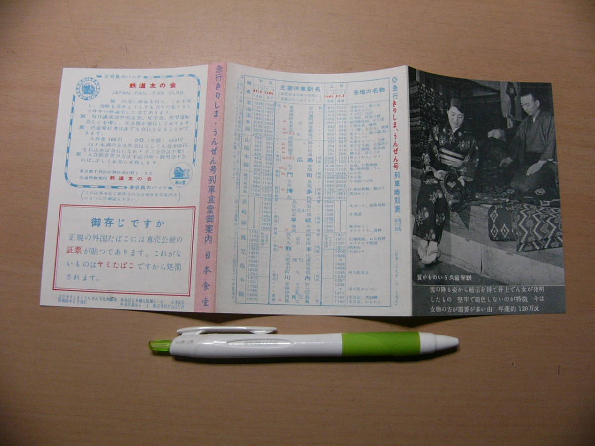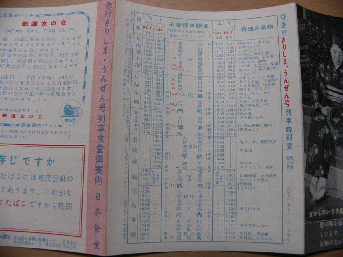 食堂車 パンフ 急行きりしま うんぜん号 列車食堂御案内 日本食堂 昭和29年2月/質がものいう久留米絣 時刻表