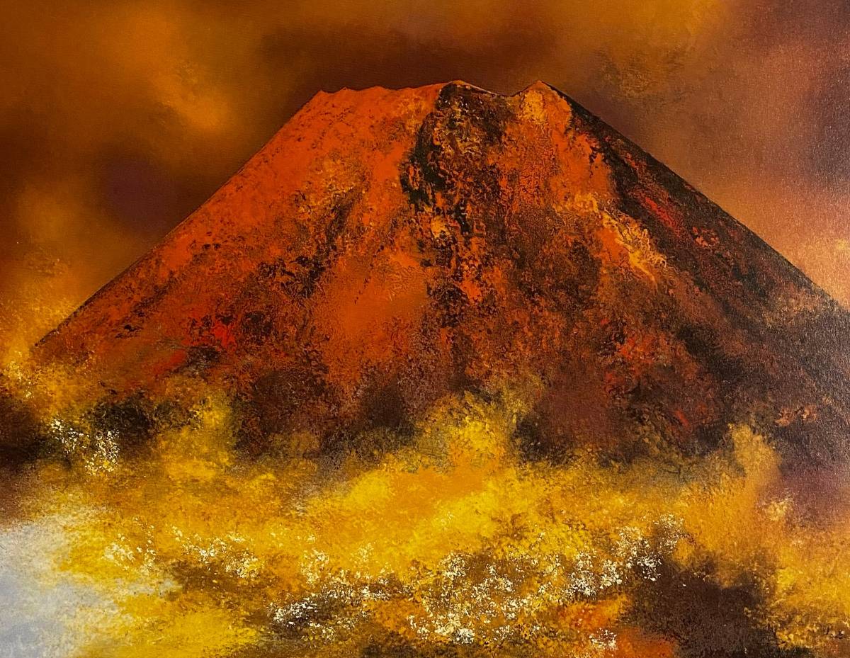木村圭吾、〈赤獄彩雲〉、希少画集画、高級新品額・額装付、状態良好、送料無料