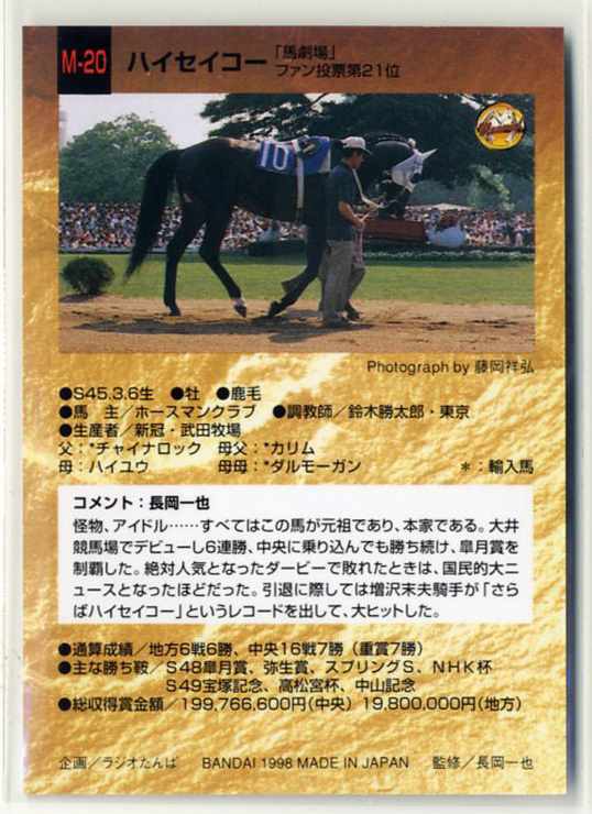 | ★ハイセイコー M20 メモリアルカード バンダイ サラブレッドカード 97年下半期版 増沢末男 アイドルホース 皐月賞馬 顕彰馬 写真 画像 競馬カード 即決 | |