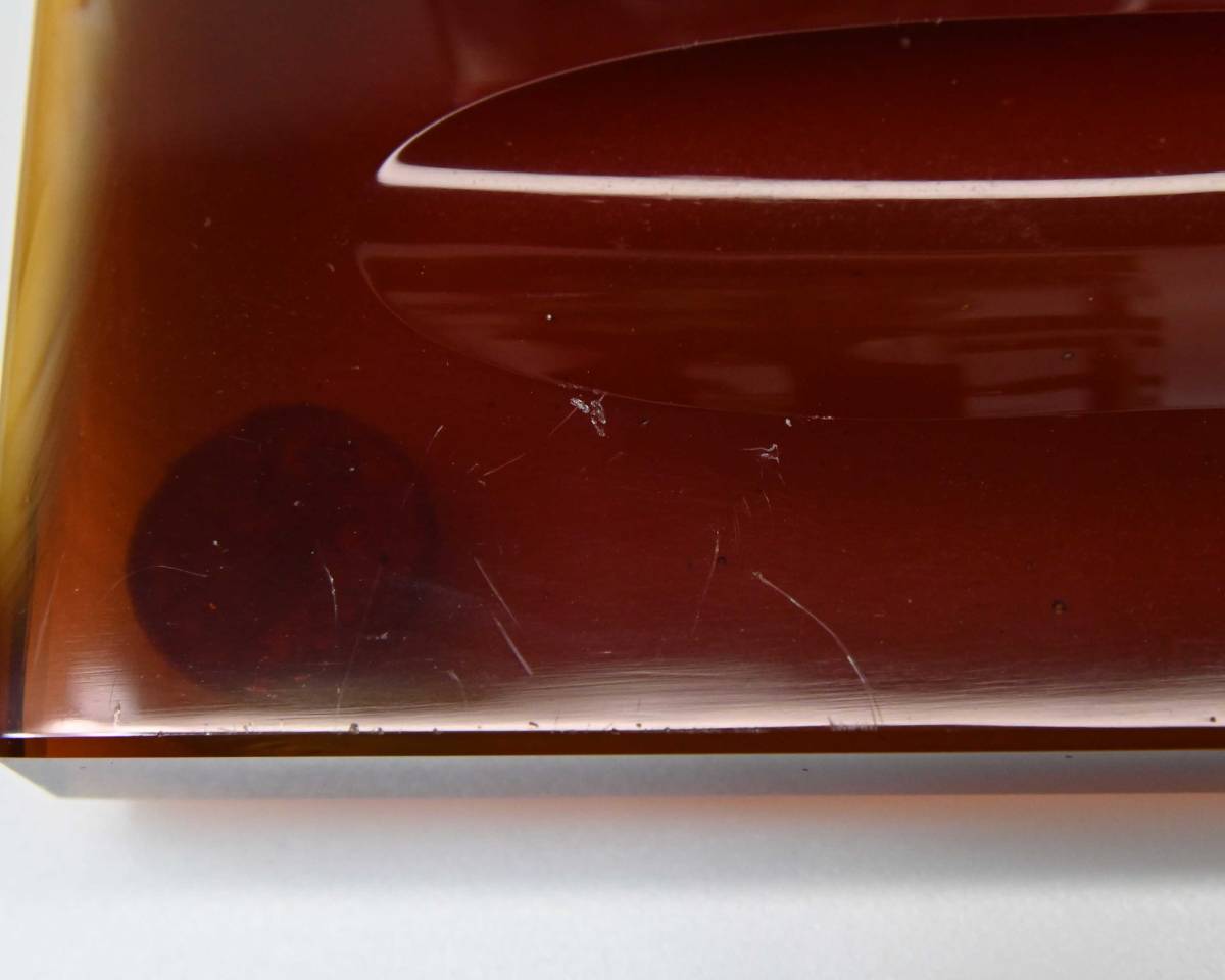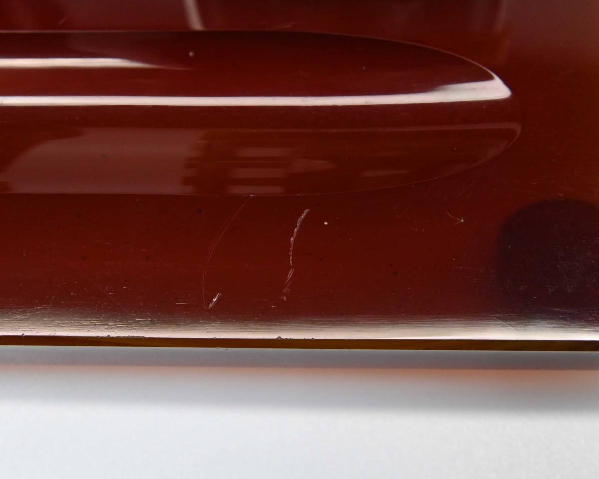 ご覧いただきましてありがとうございます。 透明感のある茶色ガラスのペンスタンドです。 ガラスのふちにはクリーム色の絵の具を流したようなマーブルがあります。 二つのインク壺とペンスタンド、ペンレストの凹みが備わっています。 インク壺は取り外すことが出来ます。 裏側には富士山と松林の透かし細工があります。 ペンレストの部分に少しひっかき傷があります。 金具部分に酸化がみられます。 ★サイズ 台座幅 W19.2cm × 11.5cm 重さ 1191g 入札前に必ずお読みください ・ヴィンテージ品もしくは中古品になります。こちらが気が付かなかったキズ等がある場合がございます。また、お使いのモニター、タブレットによっては実物と色味が異なる場合があります。ご了承ください。 ・休祭日は、私用により連絡ができない場合が御座います。ご了承ください。 ・商品出品ページからのご質問につきましては、気が付かず返答ができない場合がございます。ご了承ください。 ・終了まじかの入札の取消しはできかねます。ご了承下さい。 ・携帯もしくはフリーメールアドレスでご入札される方は、落札時の通知メールなどの連絡やお客様からの連絡がとれない場合が多くあります。ドメイン指定、拒否設定等の解除設定をお願い致します。数回ご連絡しても連絡がつかない場合、キャンセルとさせて頂く場合がございます。お気を付け下さい。 ・落札後、5日以上連絡が無い場合は、即刻ブラックリストに登録させて頂きます。お気を付け下さい。 ・ヴィンテージ品により一点物が多い為、商品の交換は受け付けていません。 ・商品の返品は配達中による破損、初期不良のみ受け付けております。その場合、送り返す送料はご負担ください。また、返金金額は商品代金からヤフオク手数料等込みの10%を引いたうえで返金致します。 ・お客様への評価につきましては、評価不要のお客様が多くいらっしゃいますので、評価を頂きましたお客様に評価をさせて頂いております。ご了承下さい。 | |||