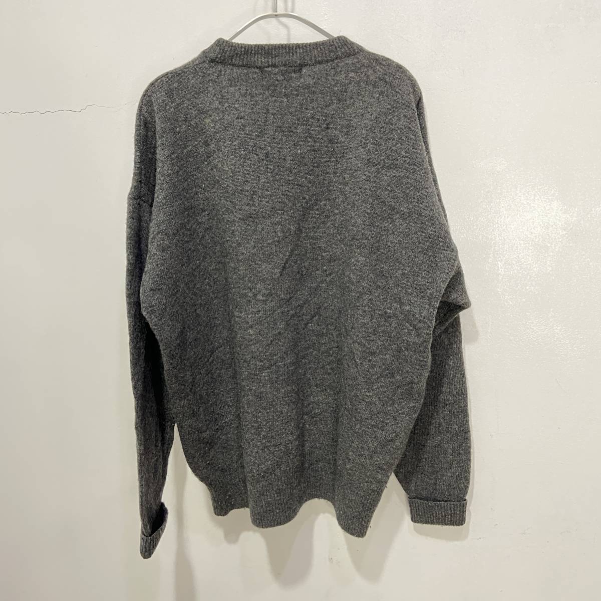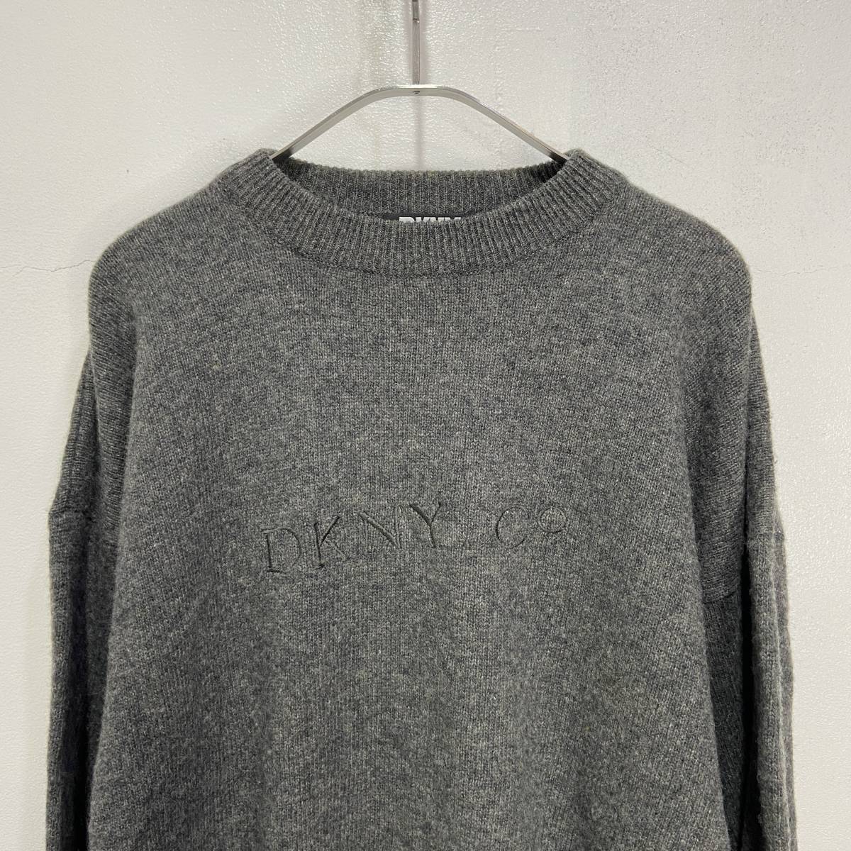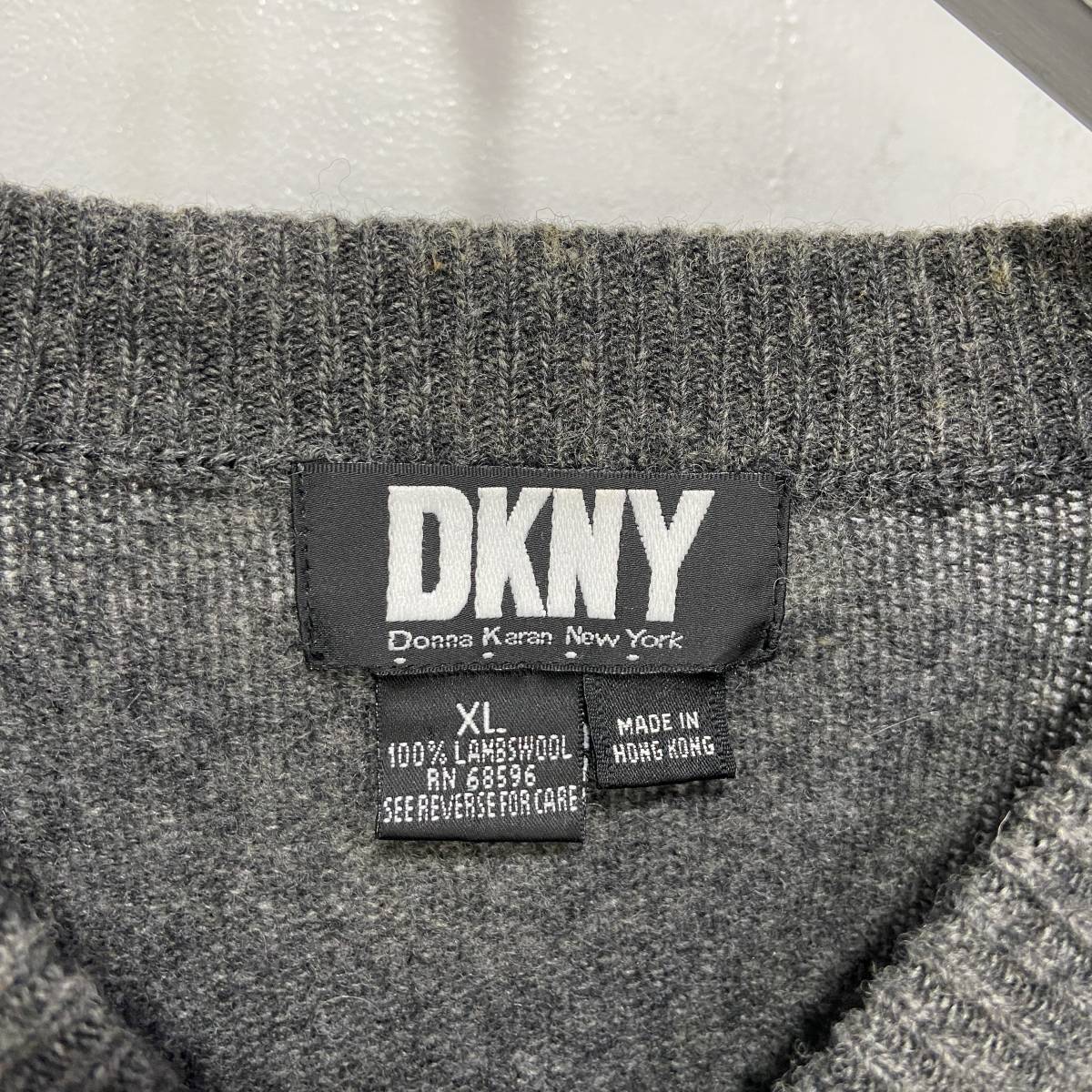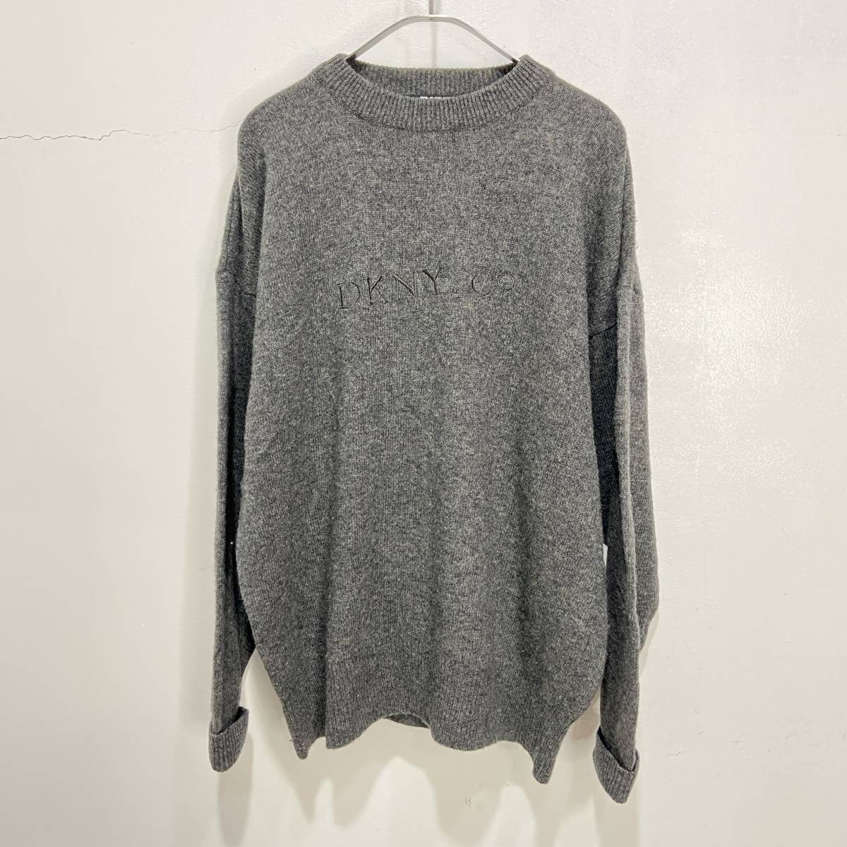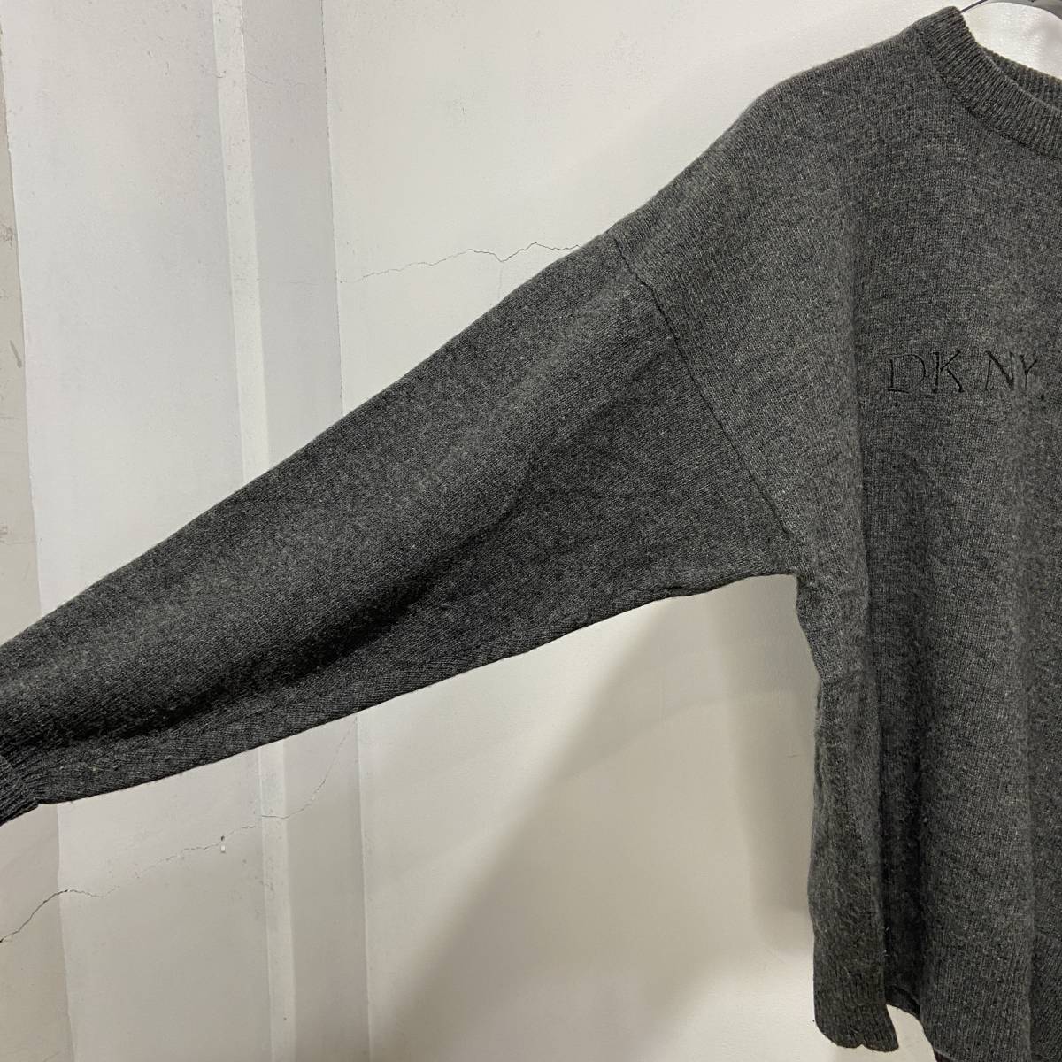 ☆送料無料☆90s☆DKNY☆ダナキャランニューヨーク☆ロゴ刺繍セーター☆ラムウール☆チャコールグレー☆XL☆L23M